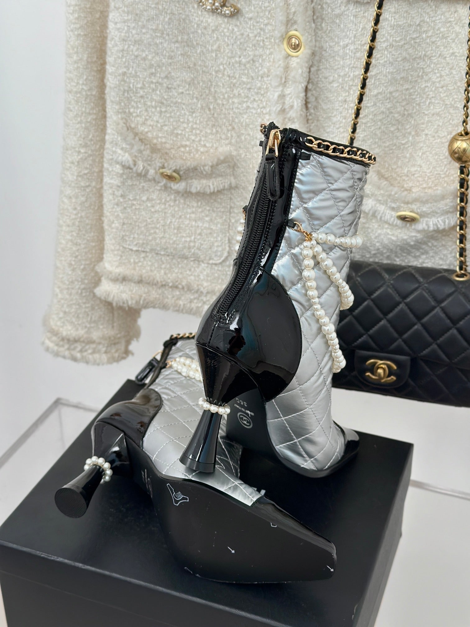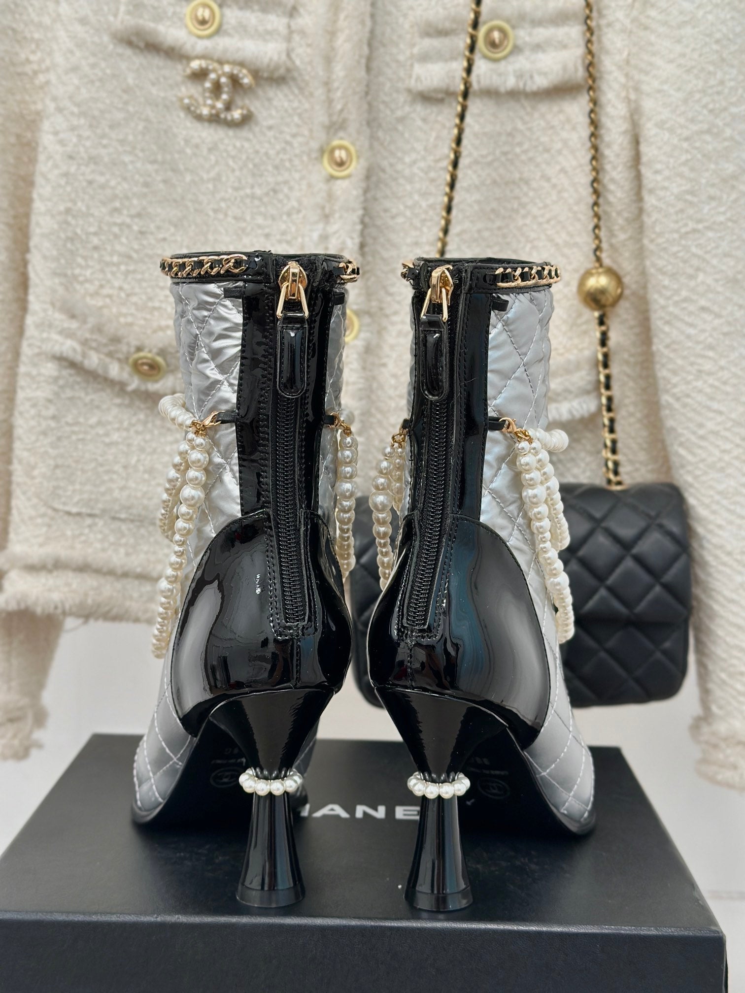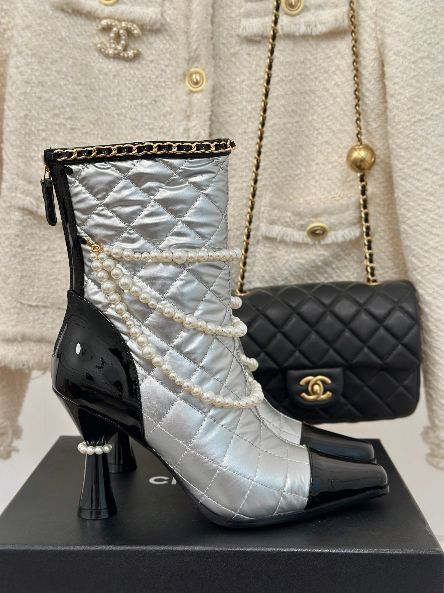 CC Ankle Boots Silver Lambskin