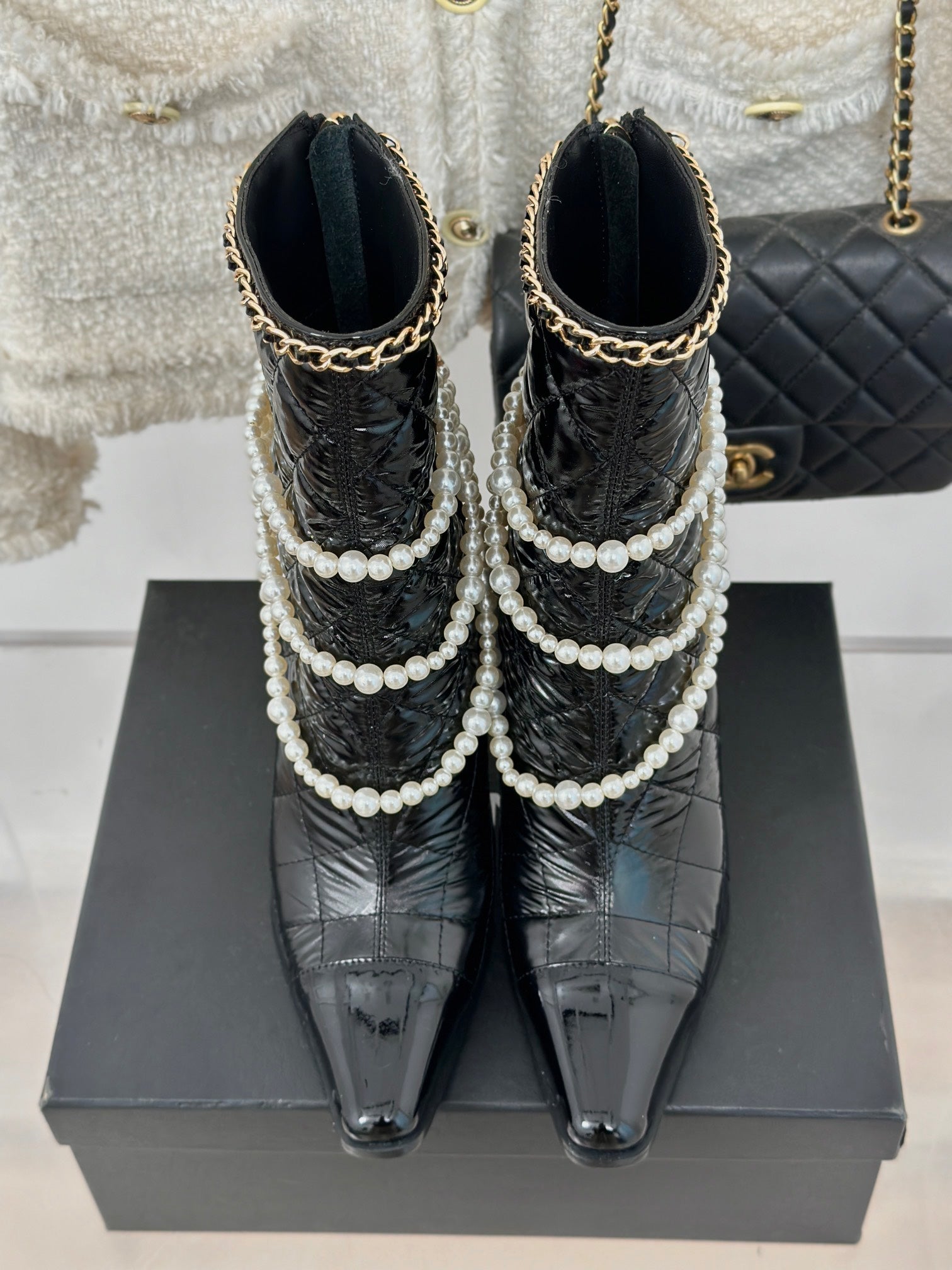 CC High Boots 80mm Glossy Black Wrinkled Quilted Calfskin