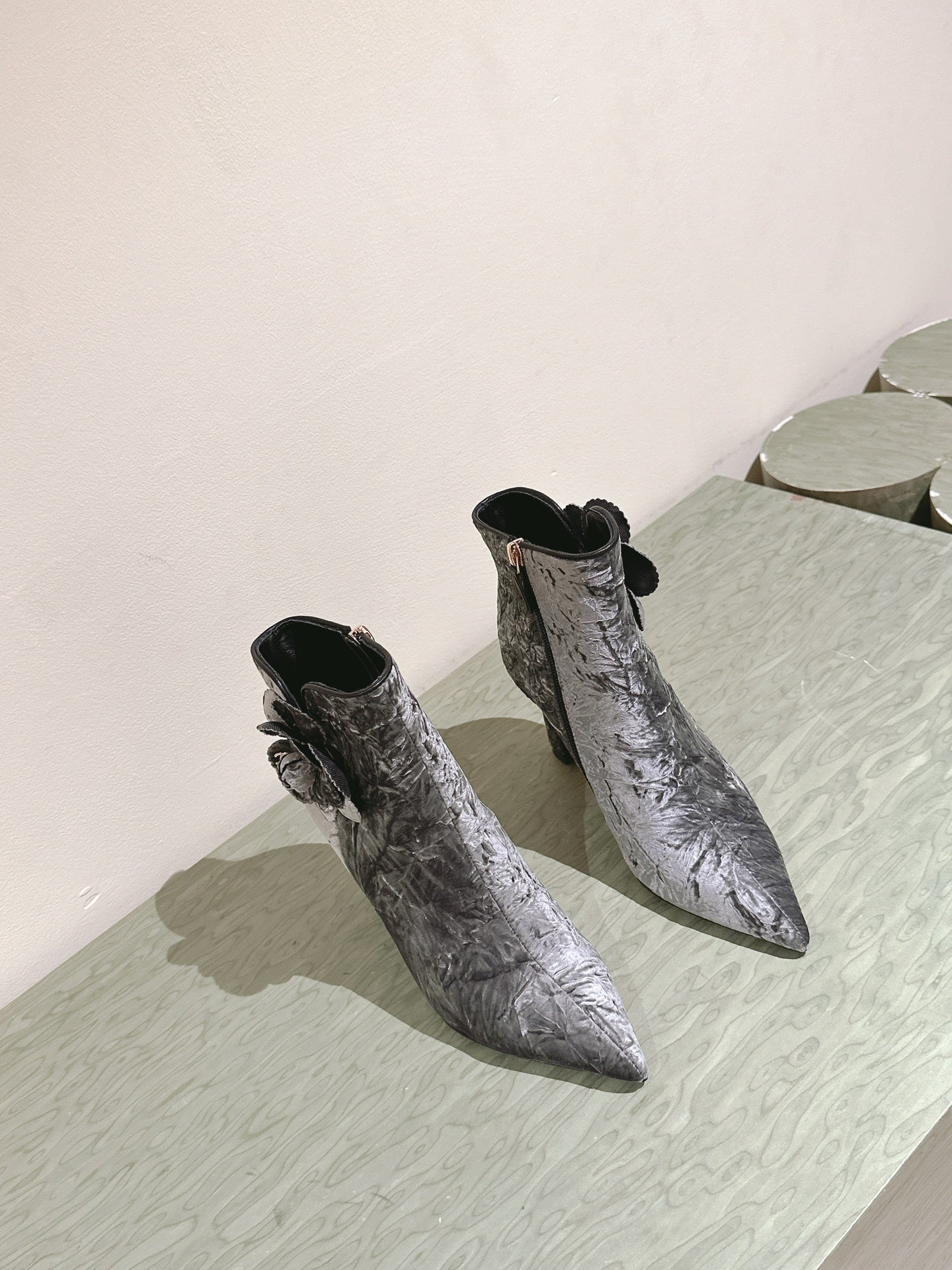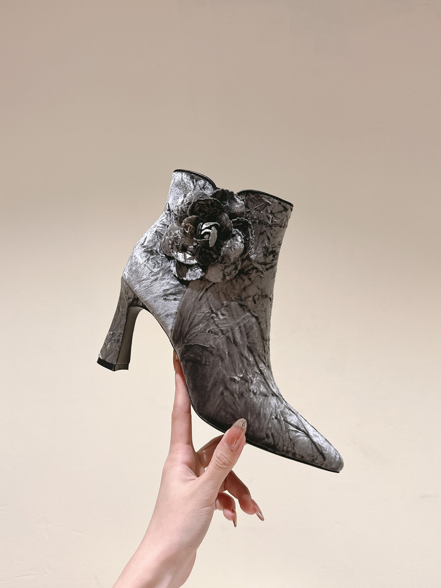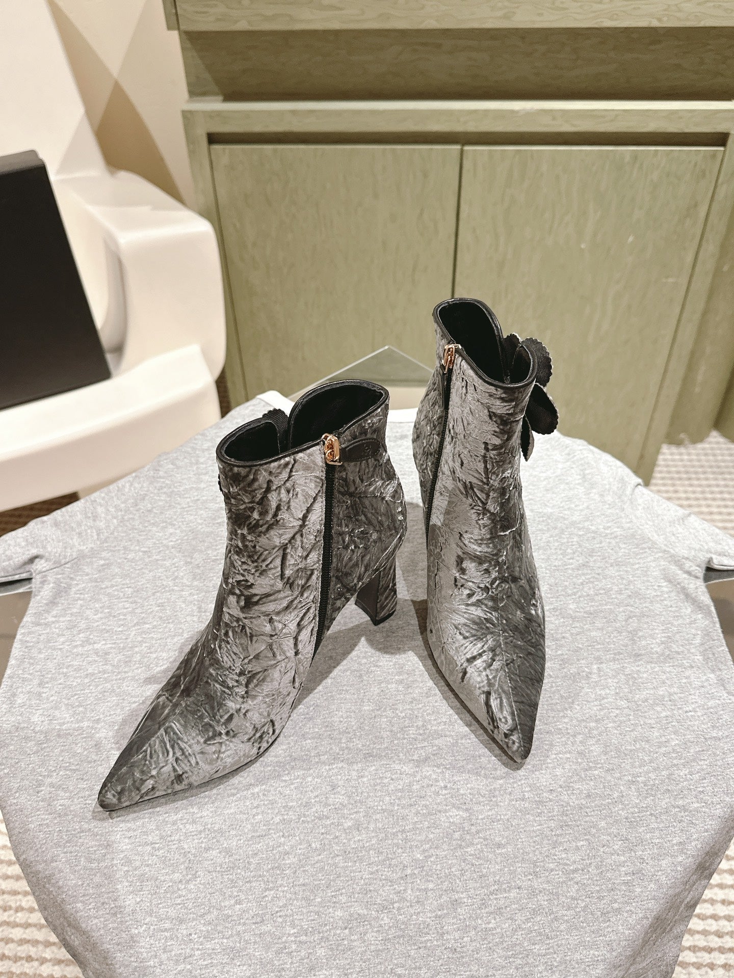 CC Ankle Boots 85mm Silver Rough Velvet Fabric