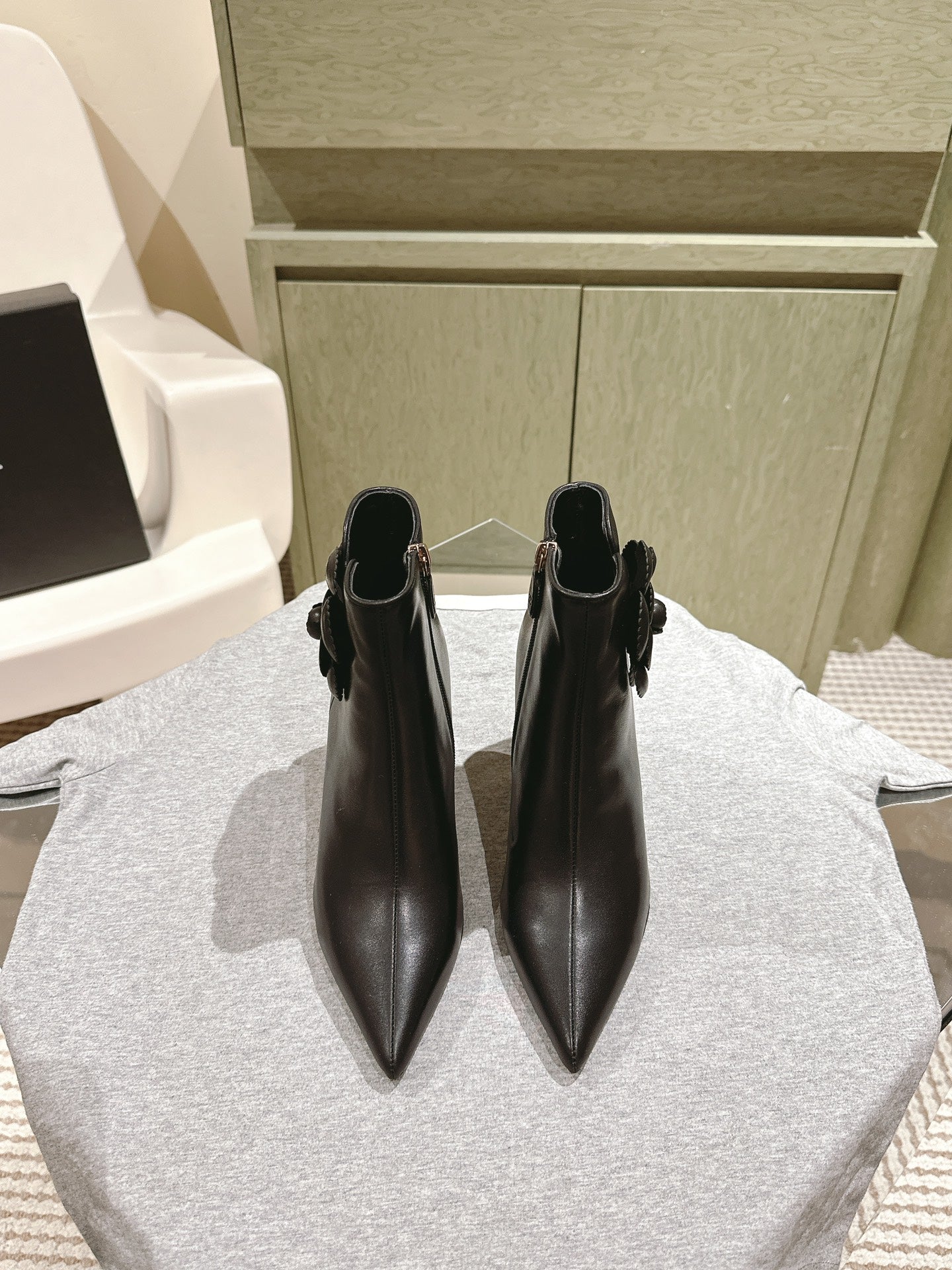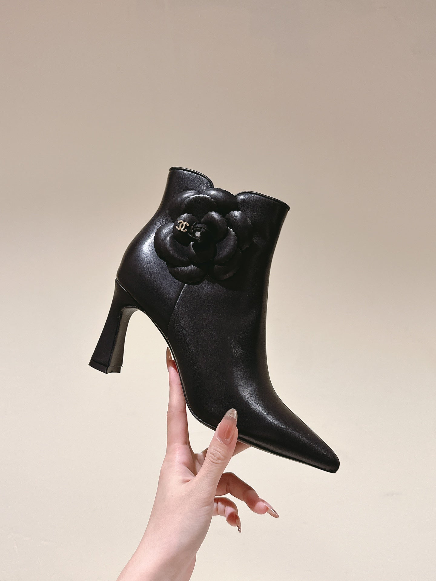 CC Short Boots Black Calfskin Lining Wool And Lambskin
