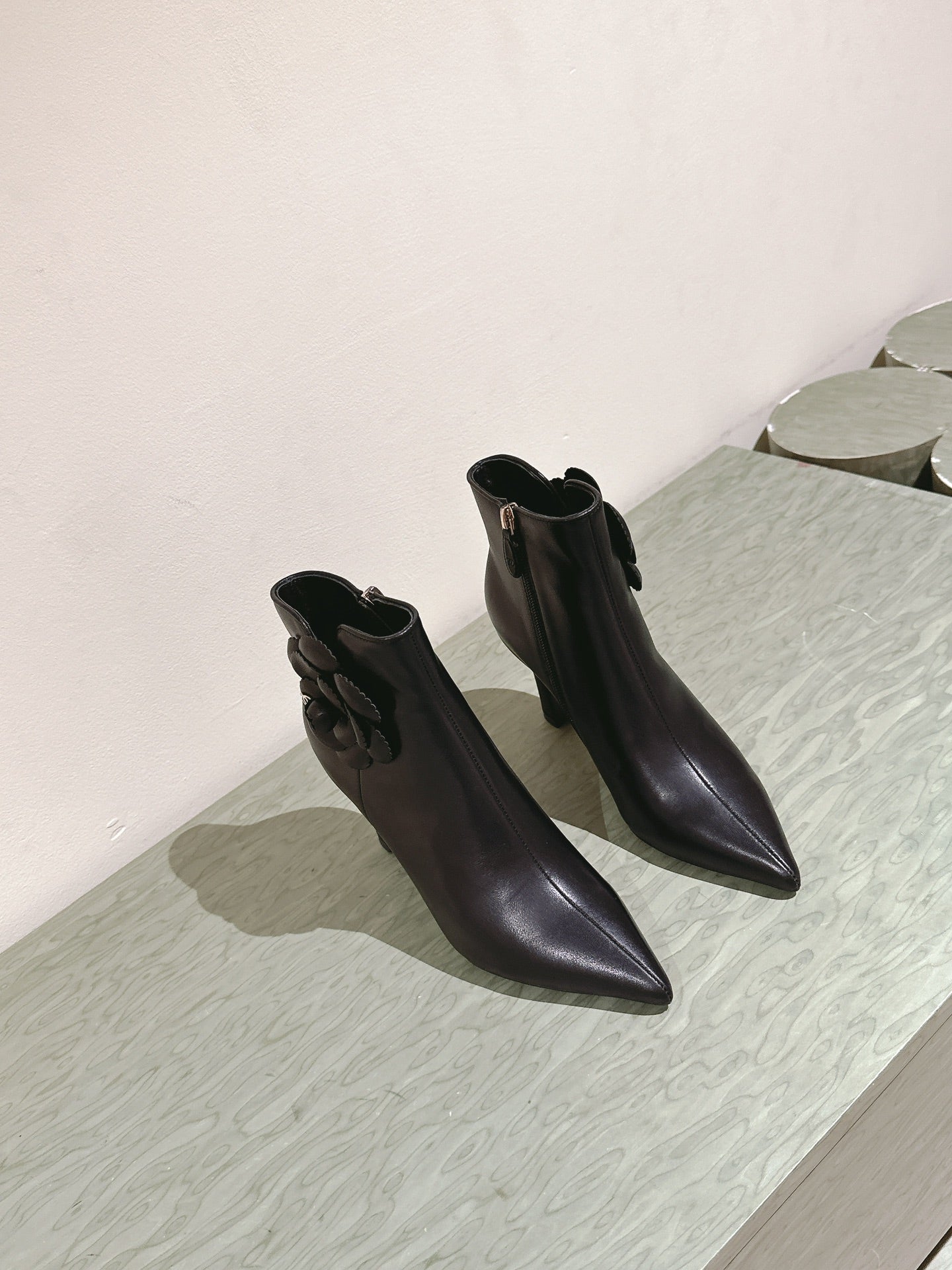 CC Short Boots 30mm Plain Black Chain Cowhide