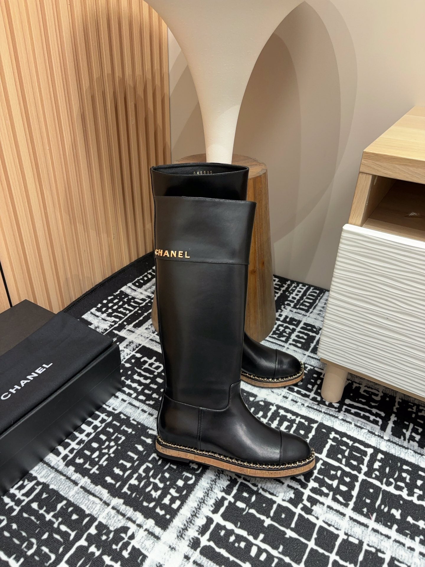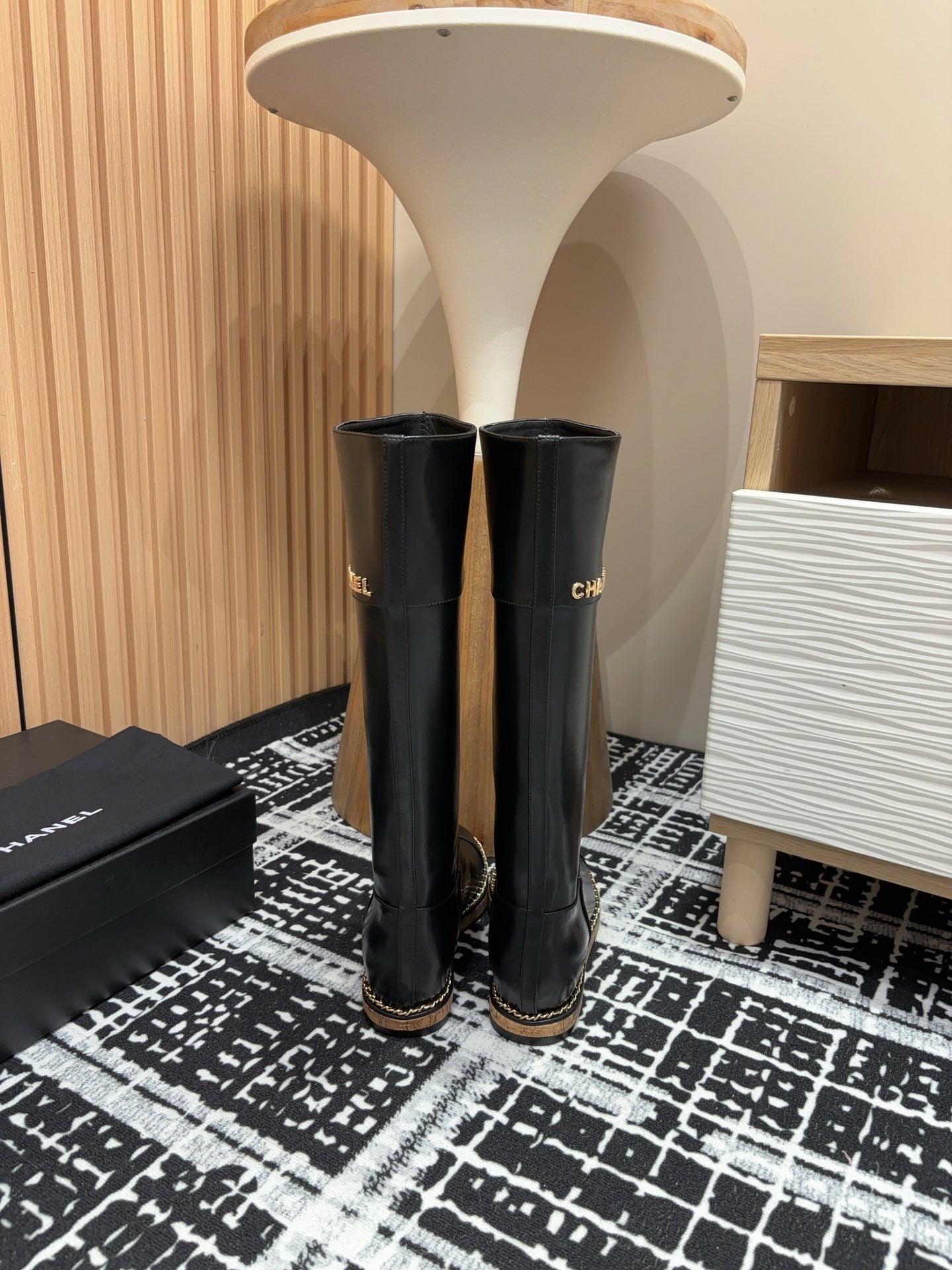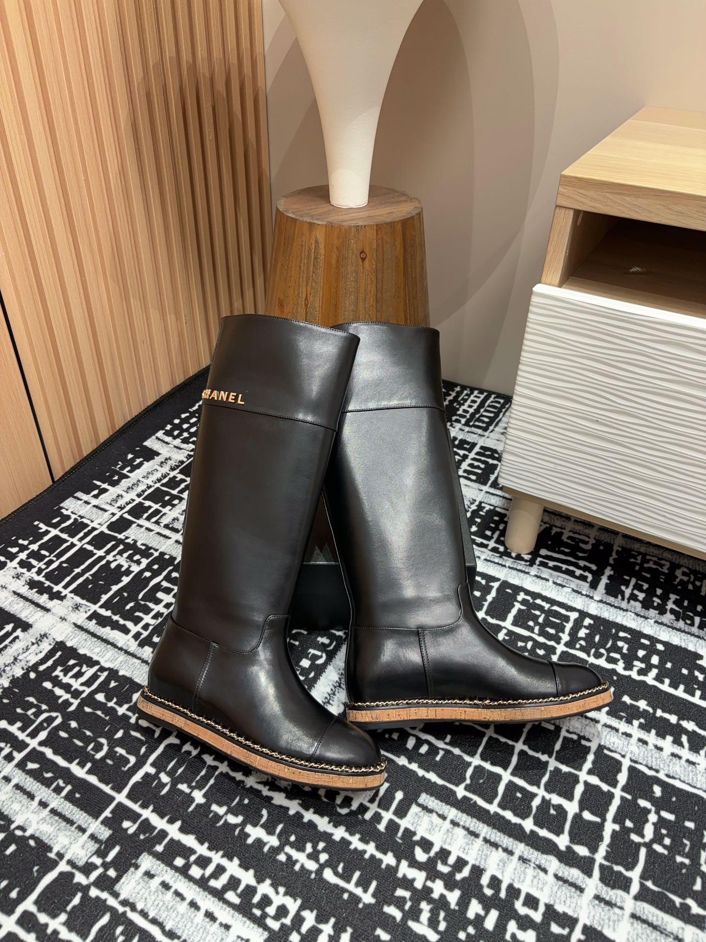CC High Boots 20mm Black Chain Calfskin