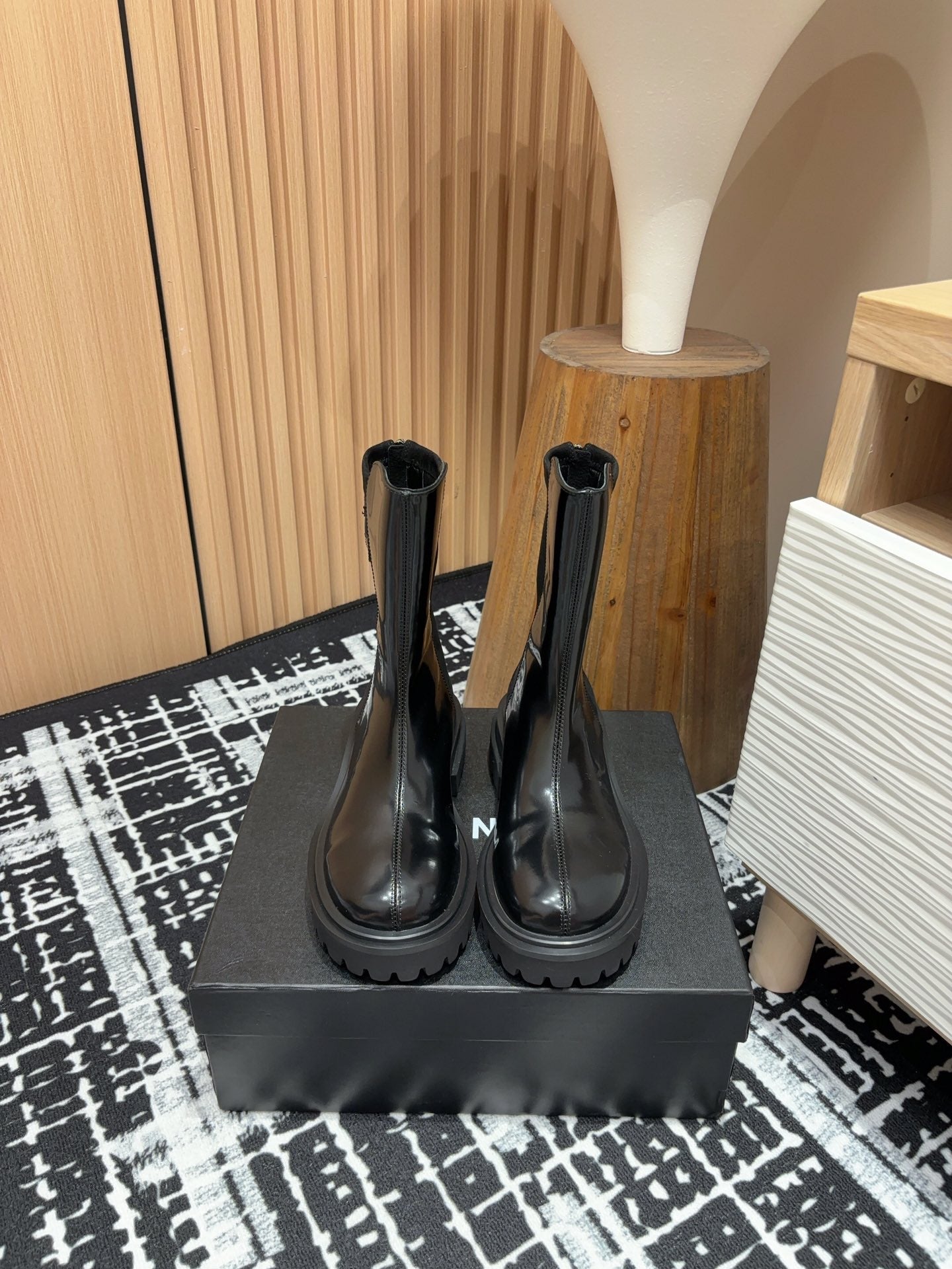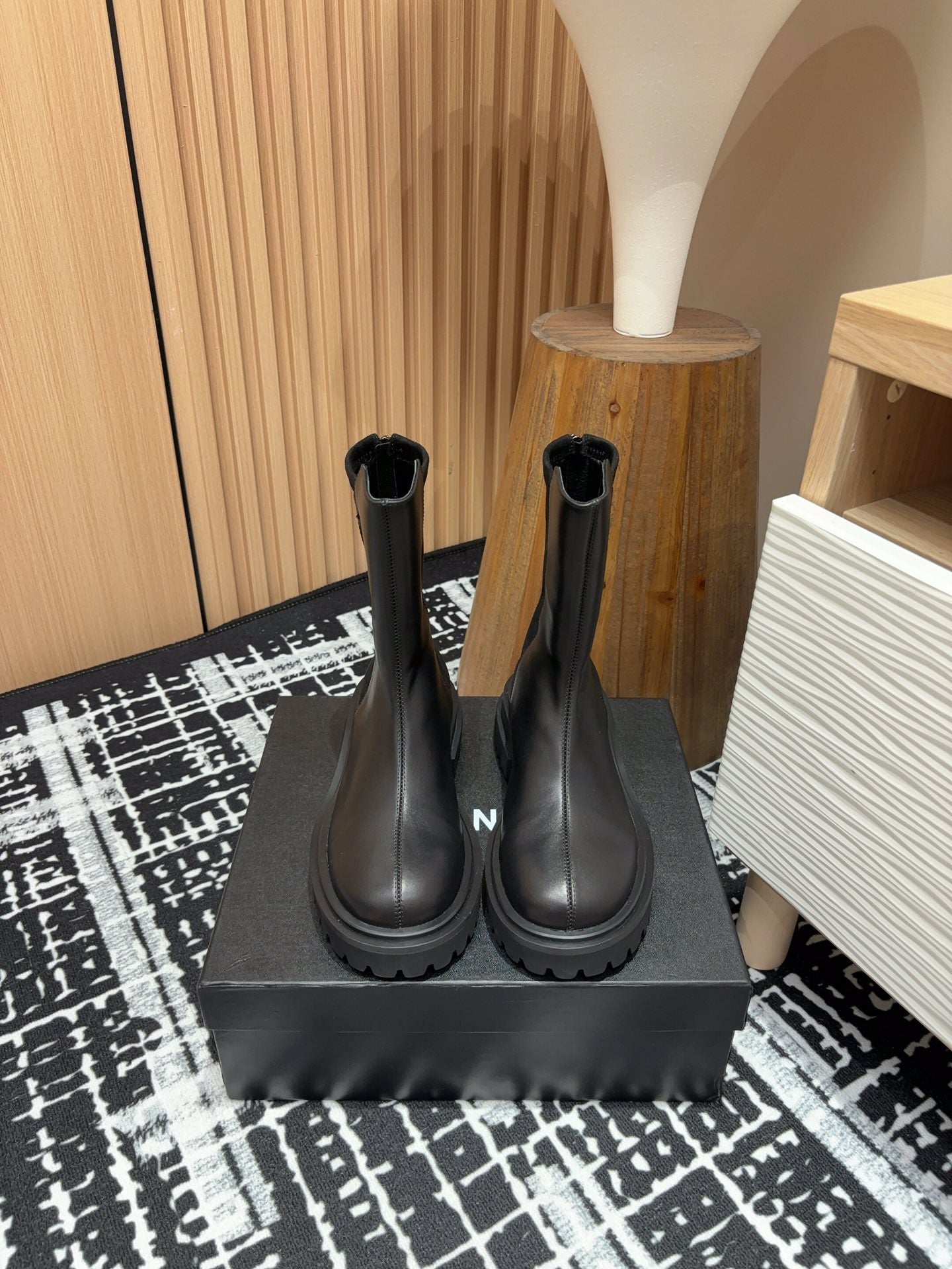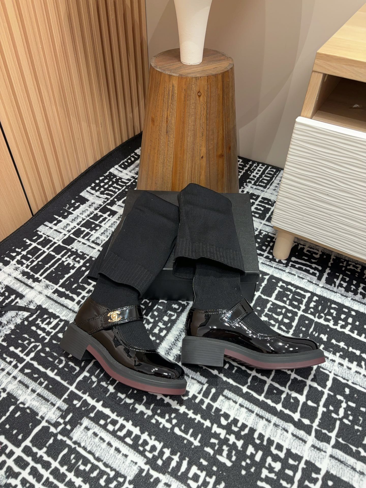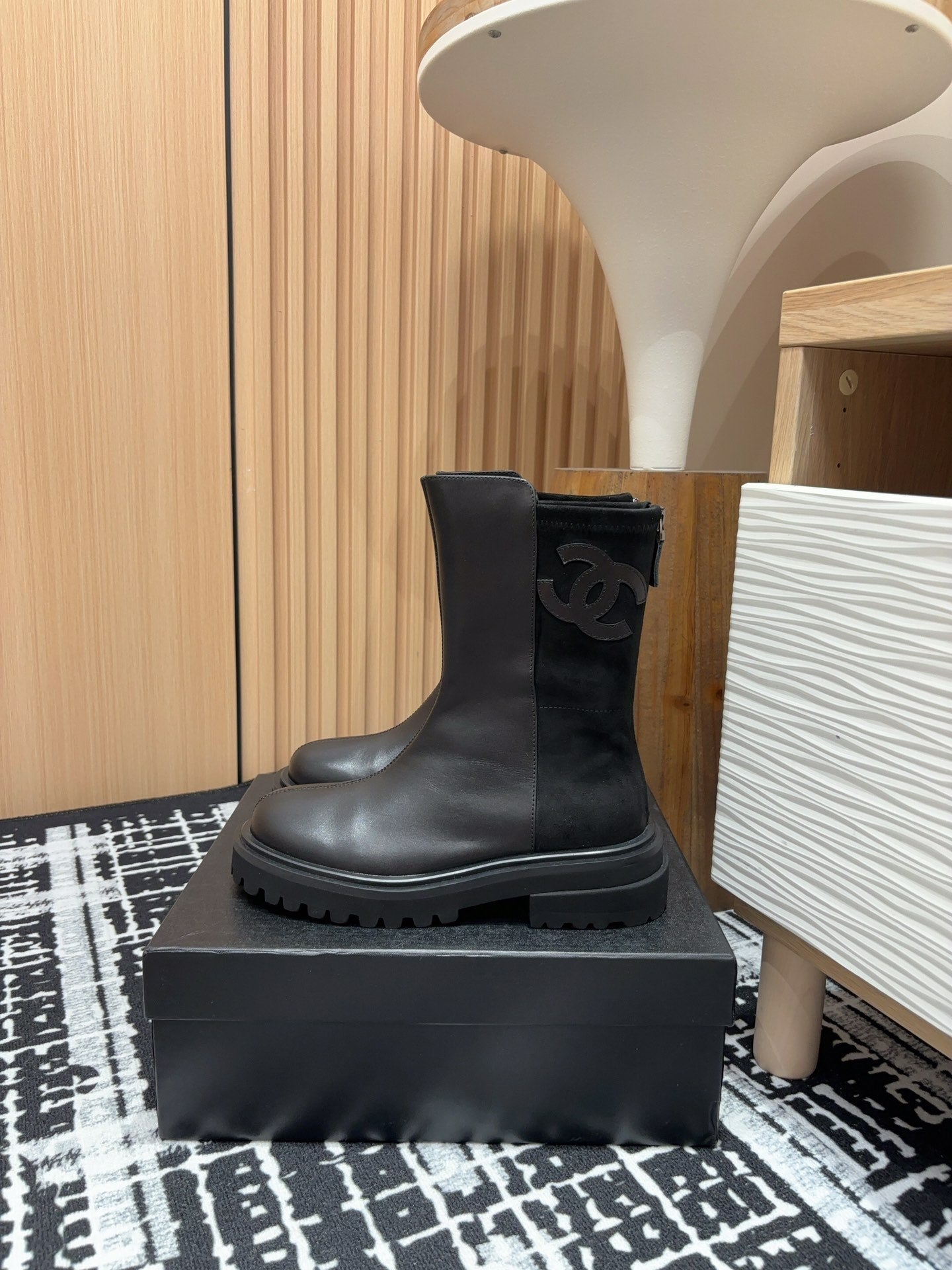 CC High Boots 50mm Black Wool And Cowhide