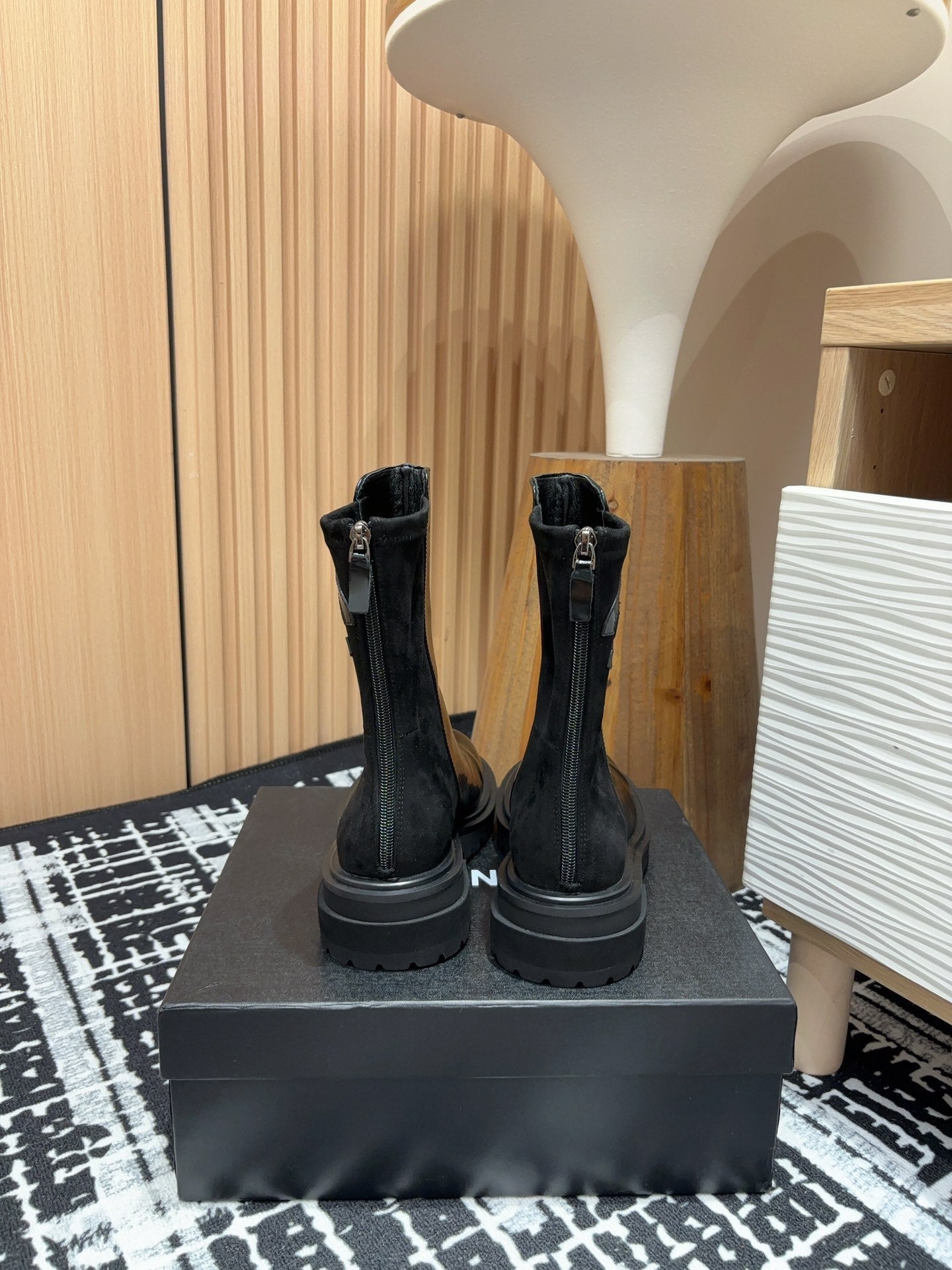 CC Short Boots 60mm Plain Black Camellia Suede