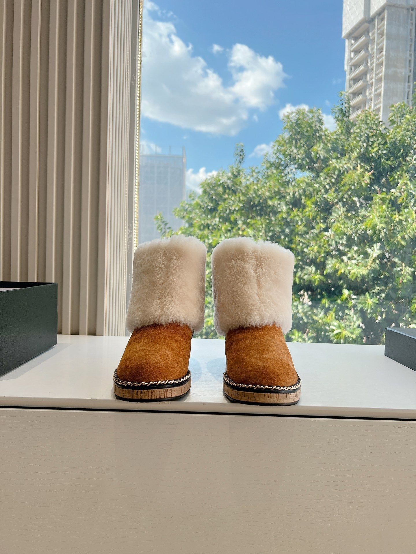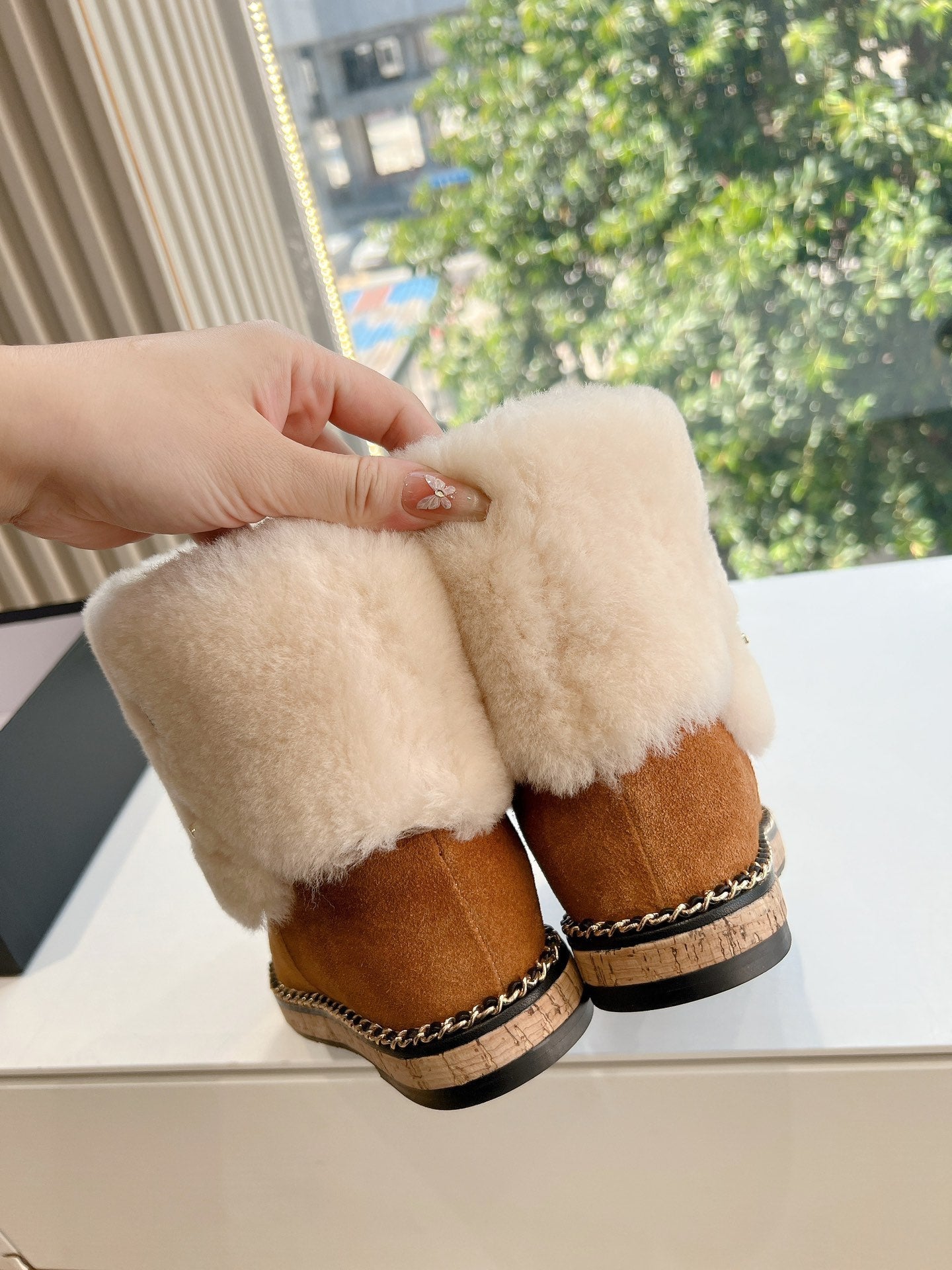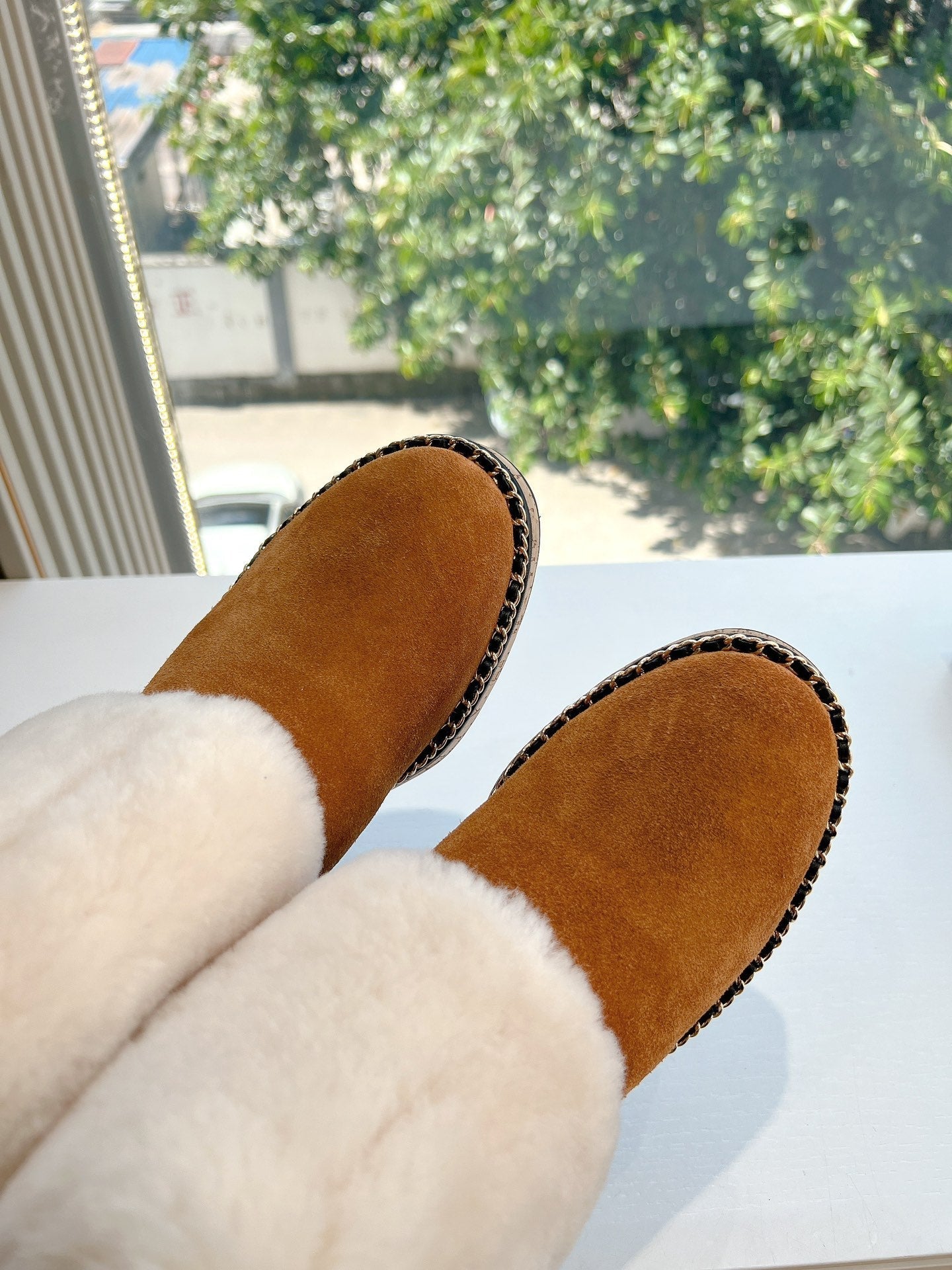 CC Flat Ankle Boots Yellow Brown With Chain Suede And Fleece