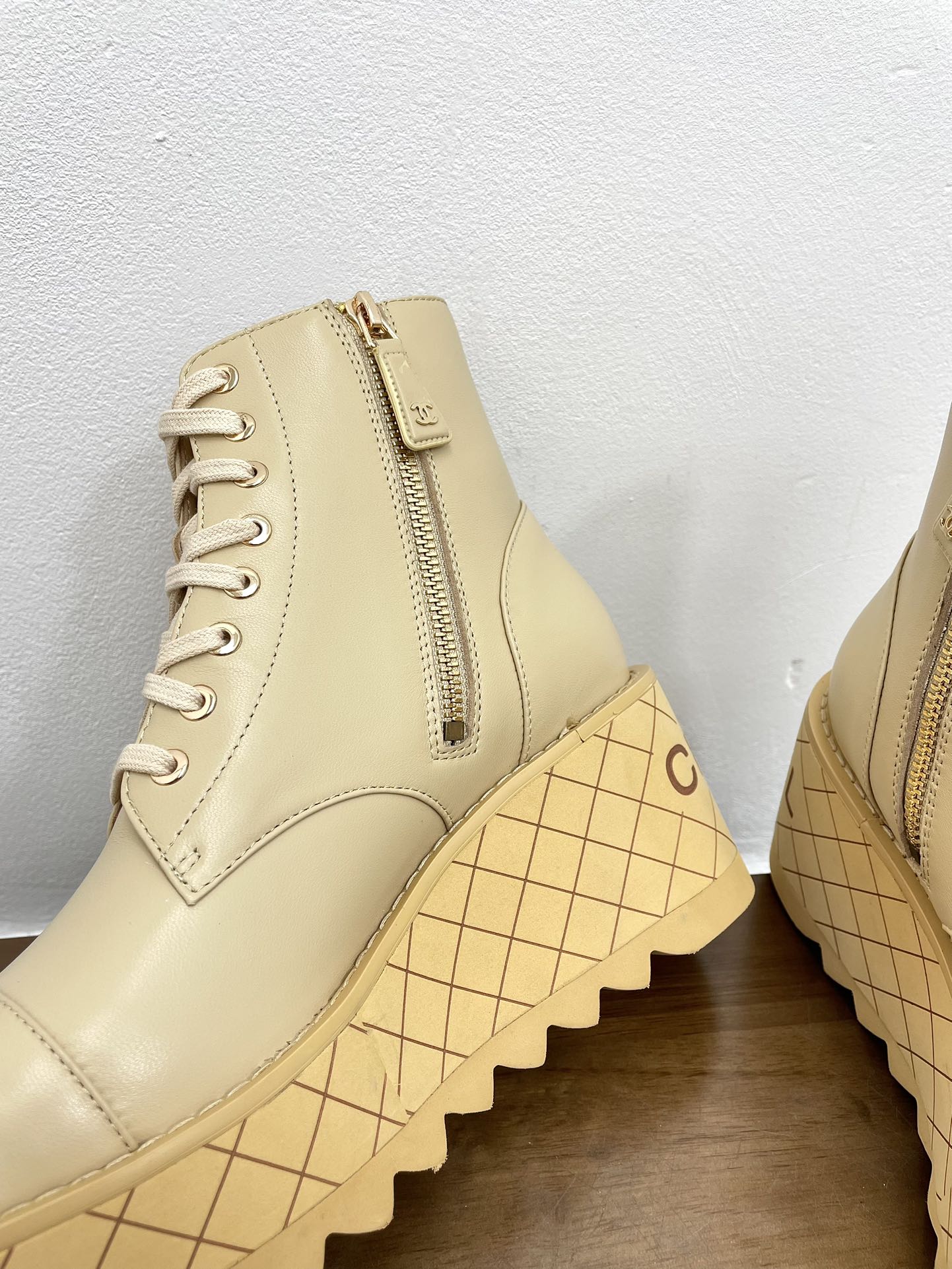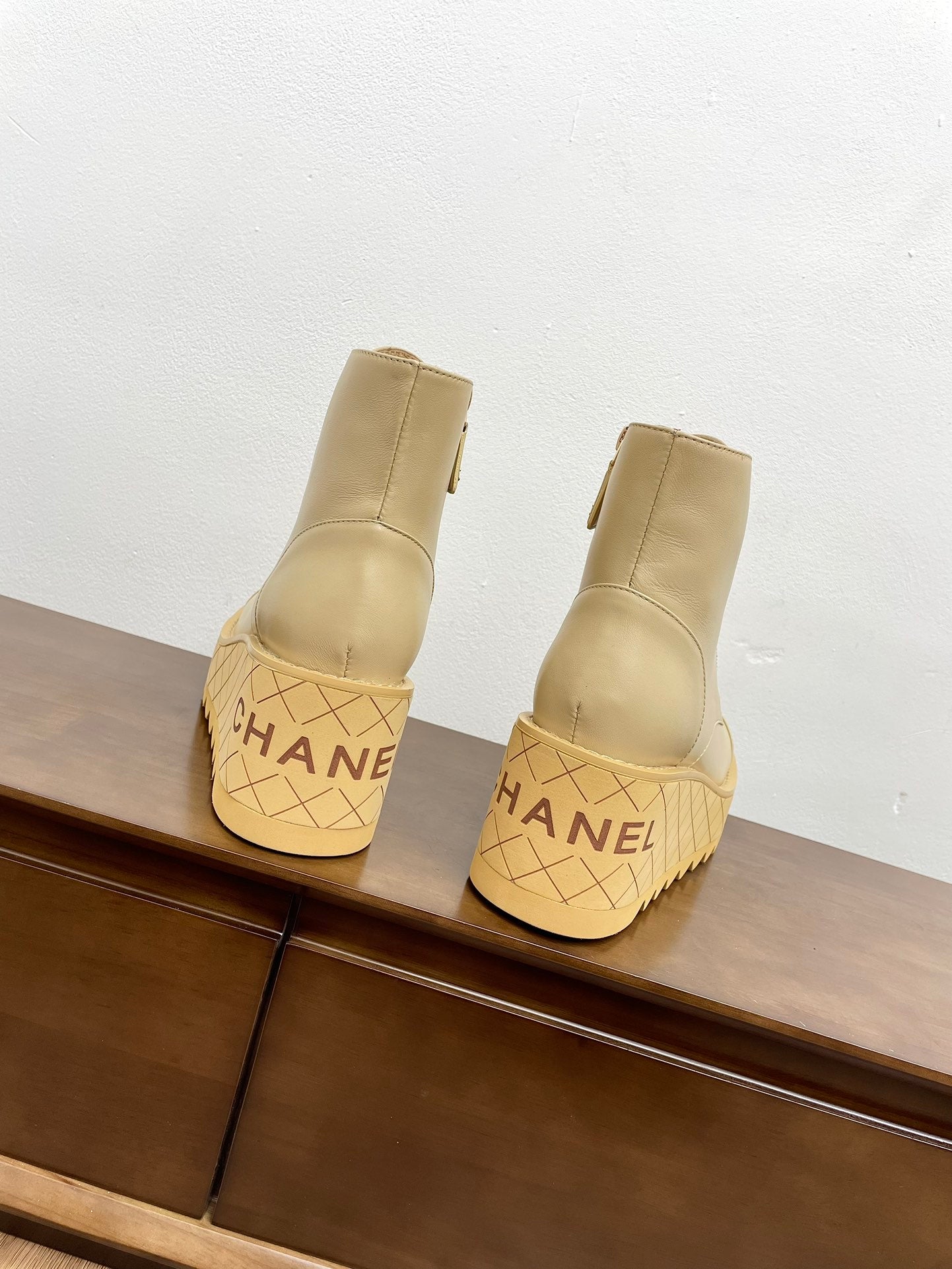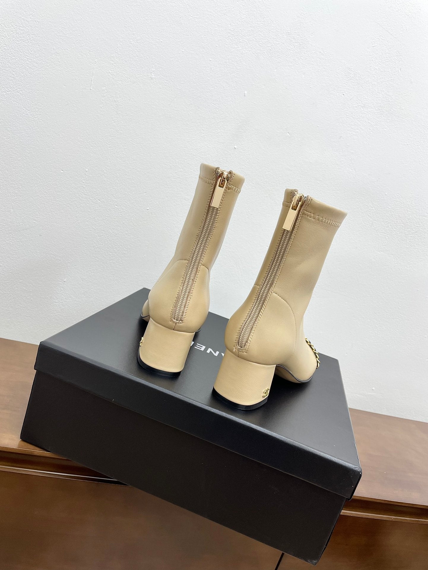 CC Ankle Boots Beige With Chain Calfskin