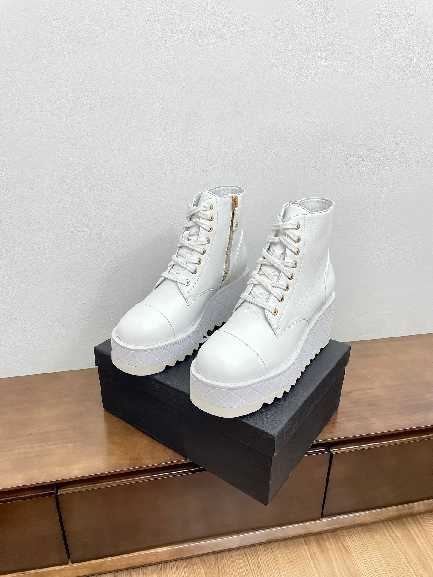 CC High Boots 45mm White Mix Black Quilted Cowhide