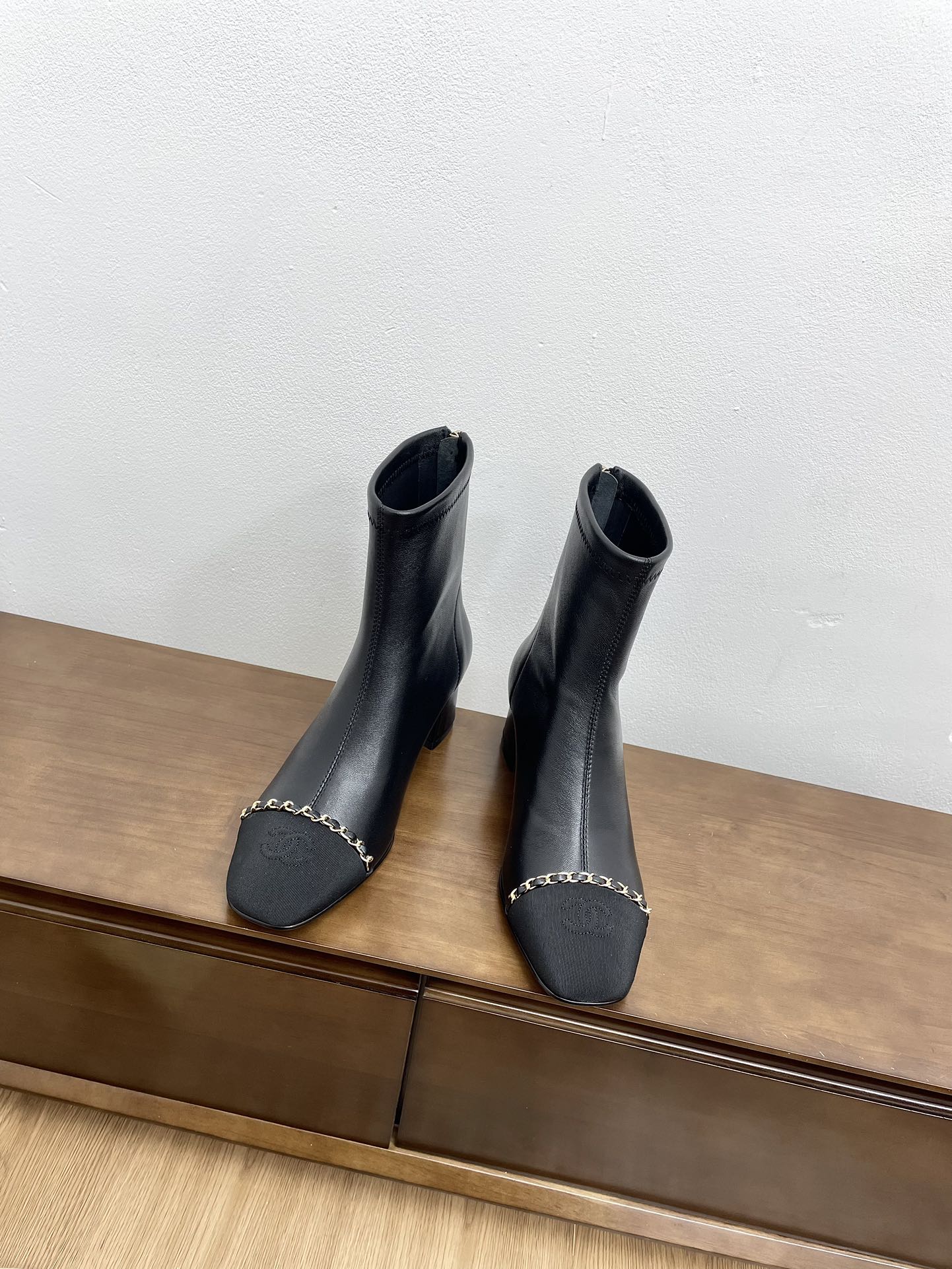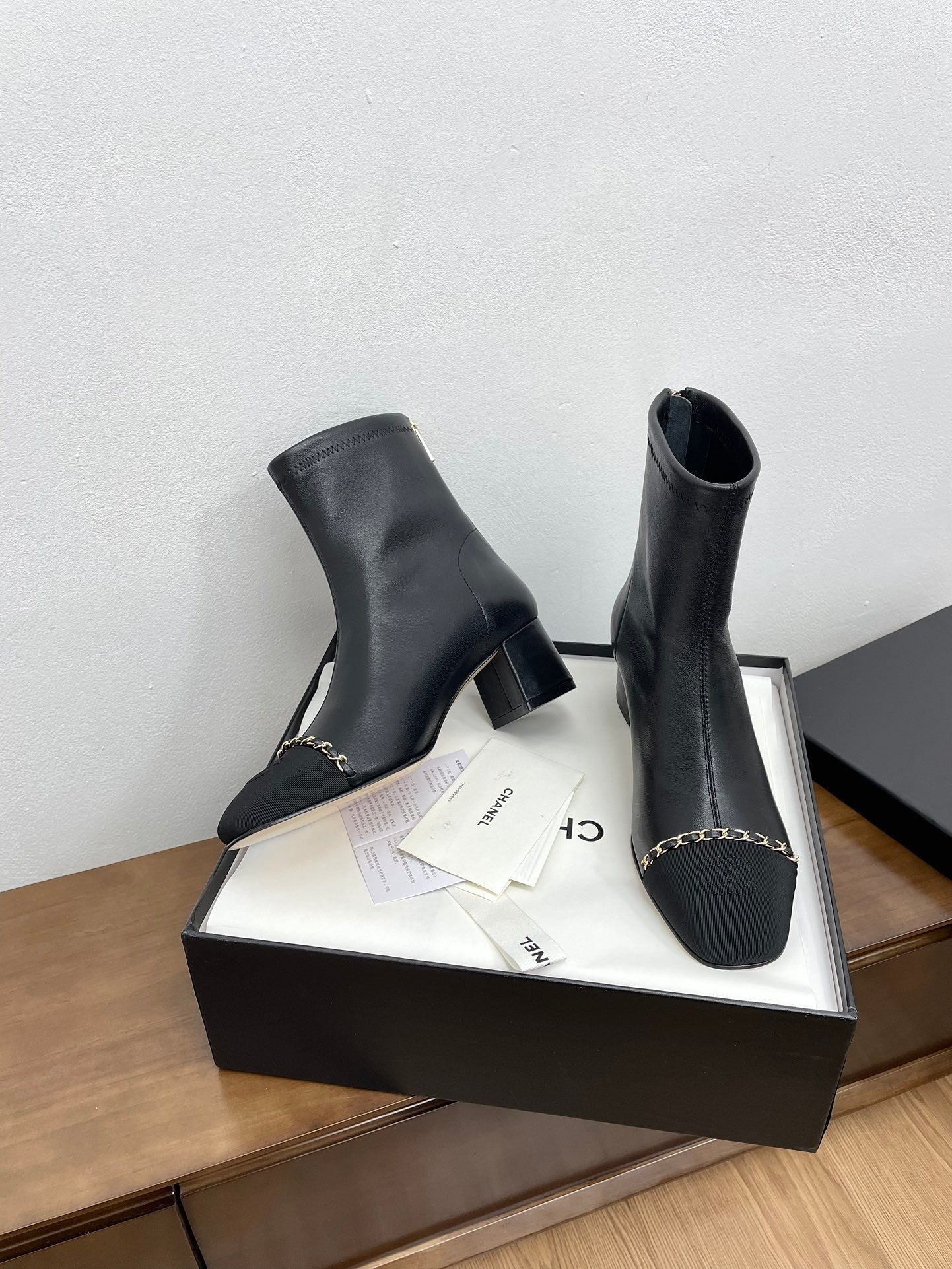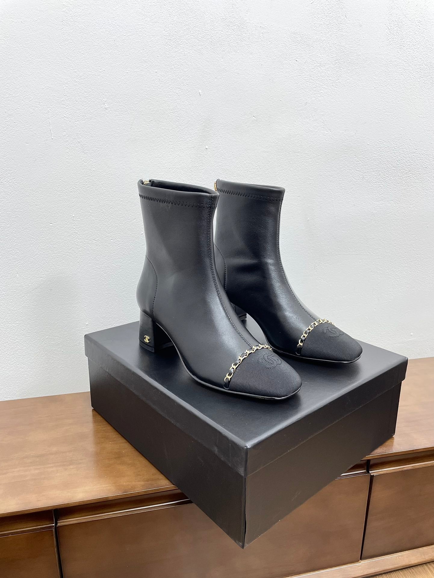 CC Ankle Boots Black With Chain Calfskin