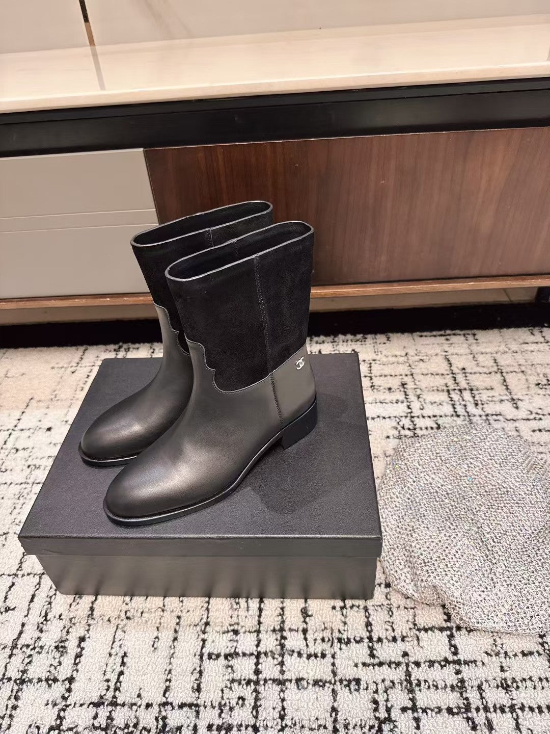Chanel 25A Winter New Low Boots Black Cowhide 393516