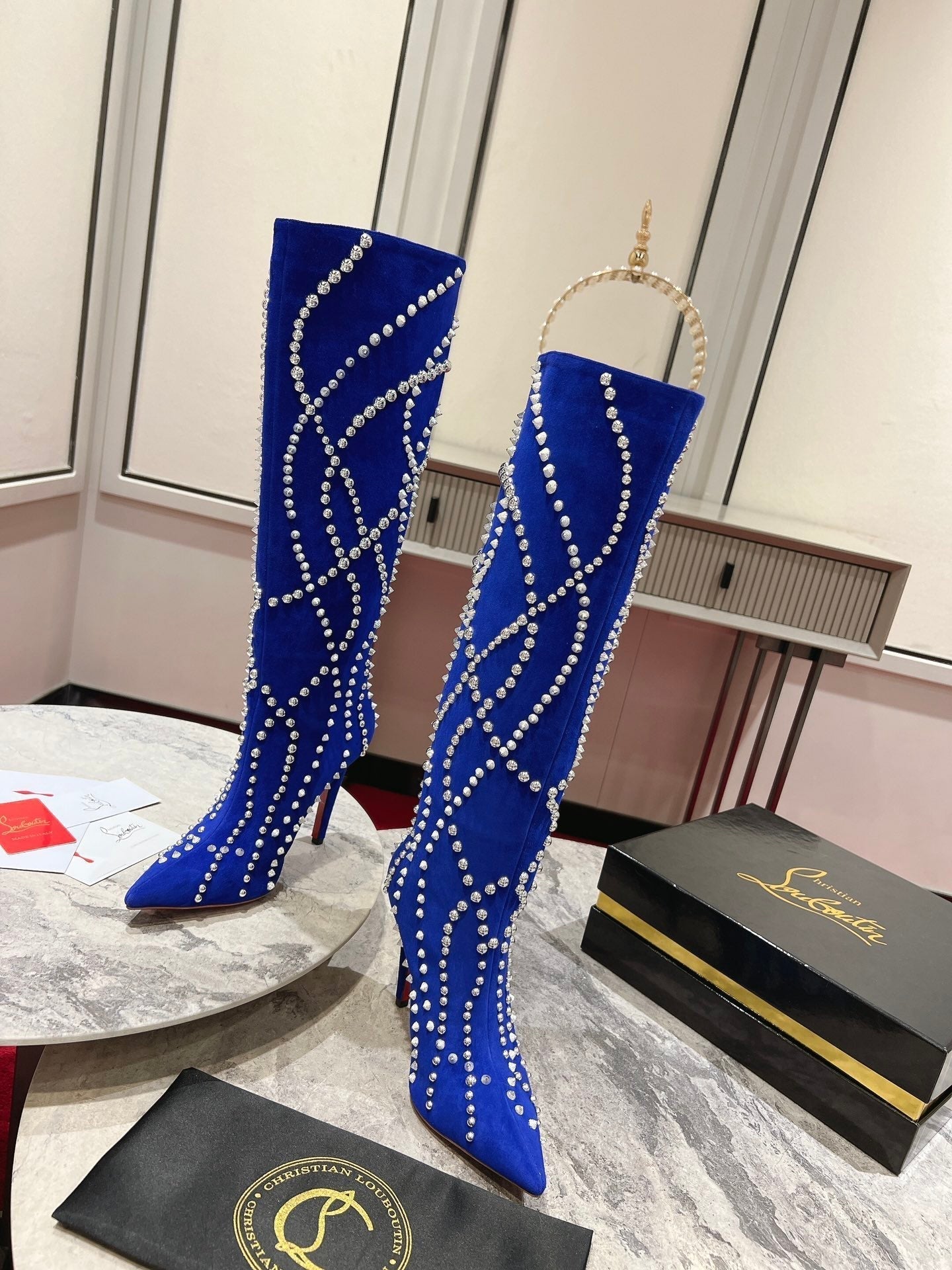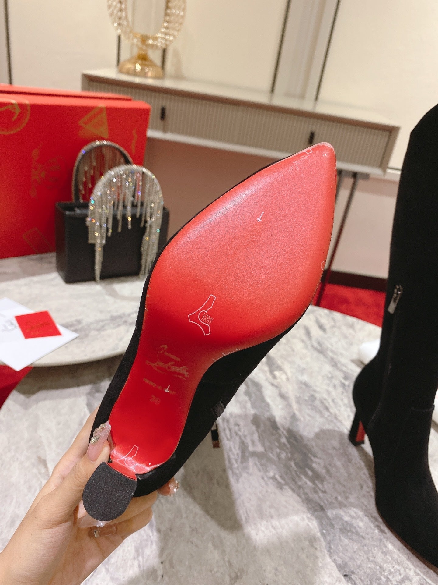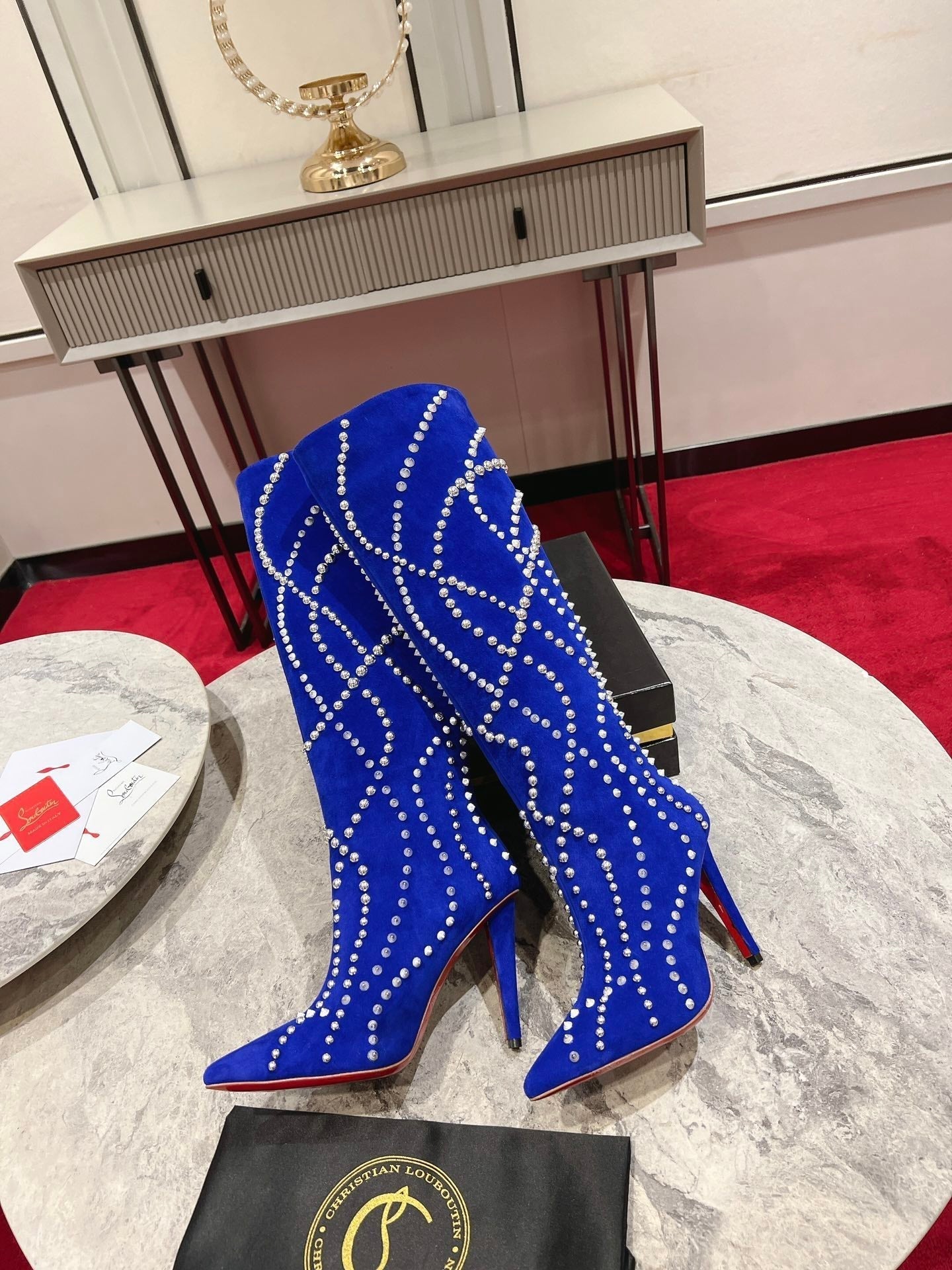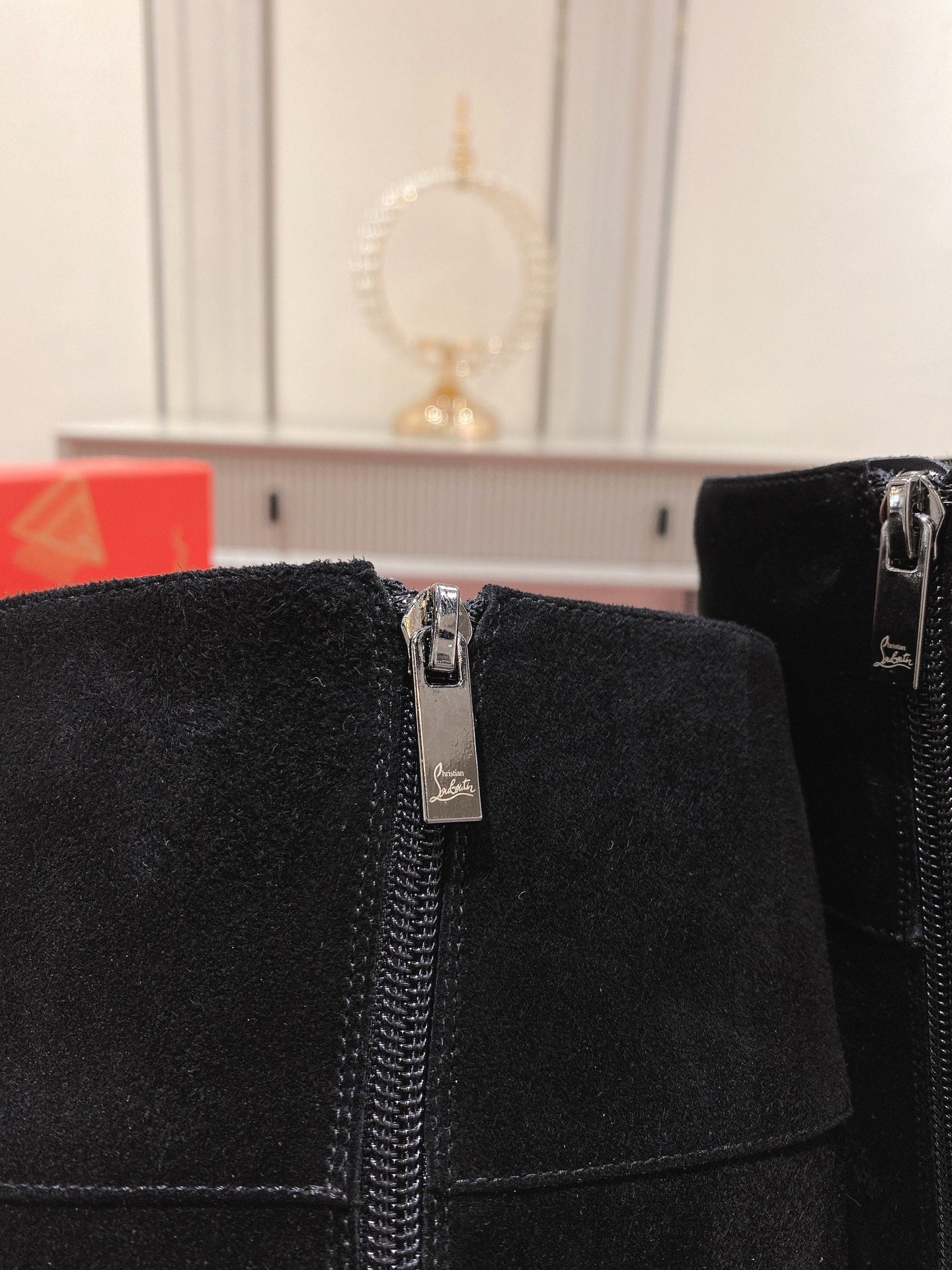 CL Alta Botta Plume Boots 100mm Suede Studded Black