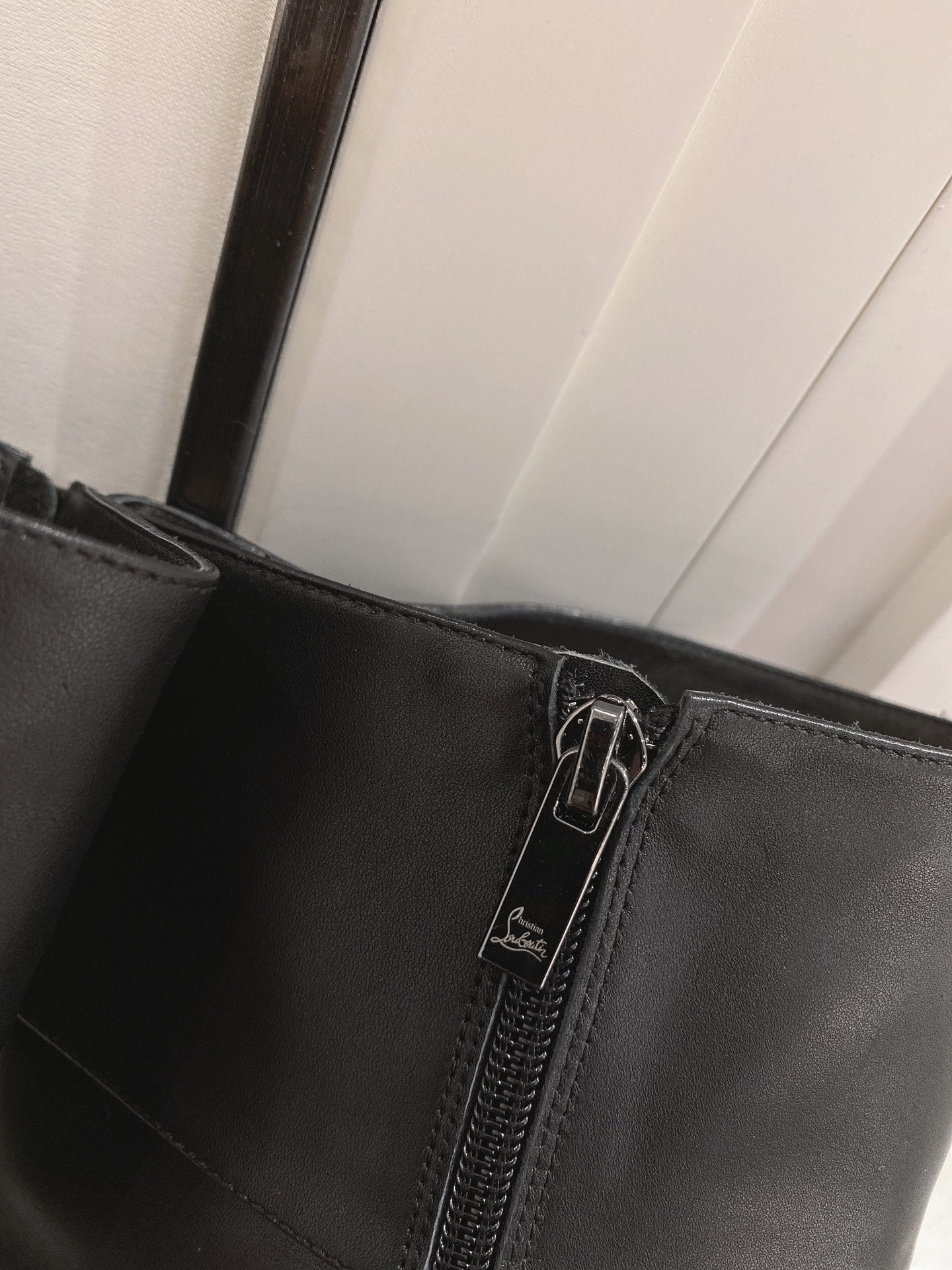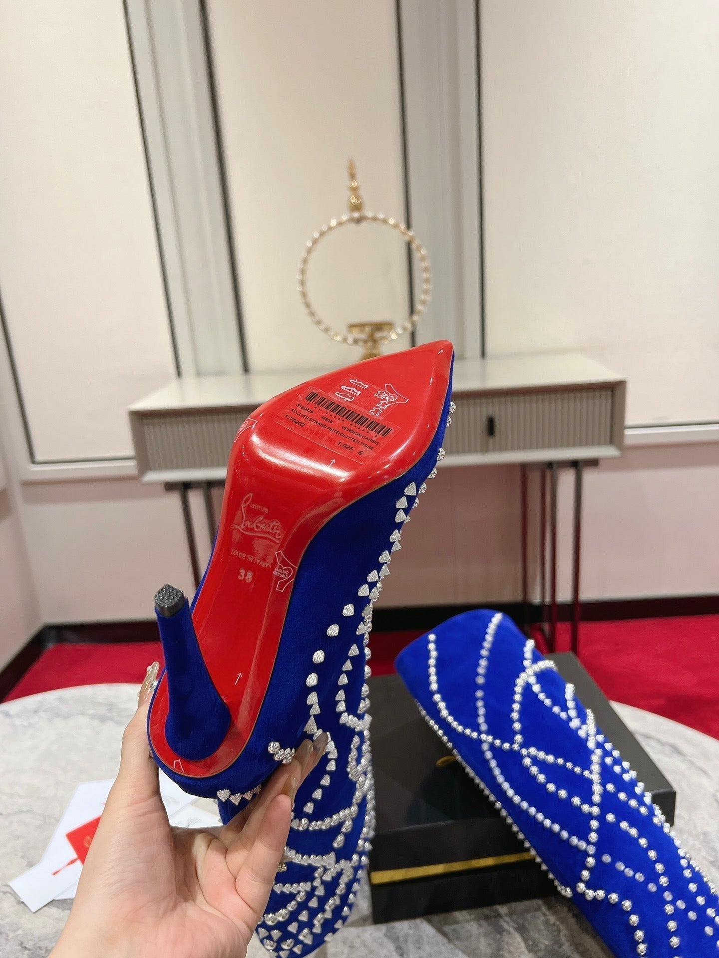 CL Jessie Booty Joli 100 mm Patent Satin Crystal Embellished Black