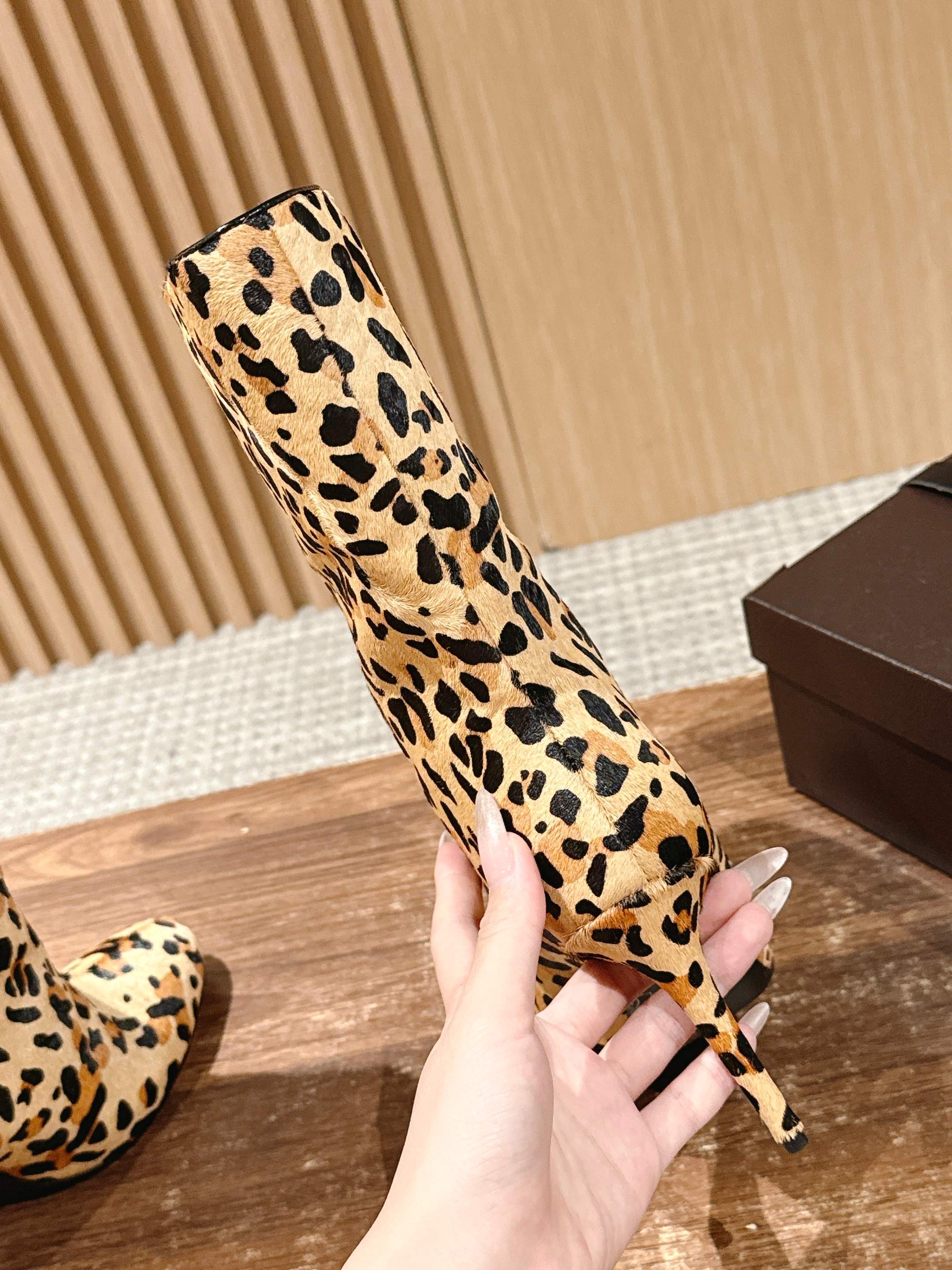 ALAIA high-heeled short boots leopard print velvet 386014