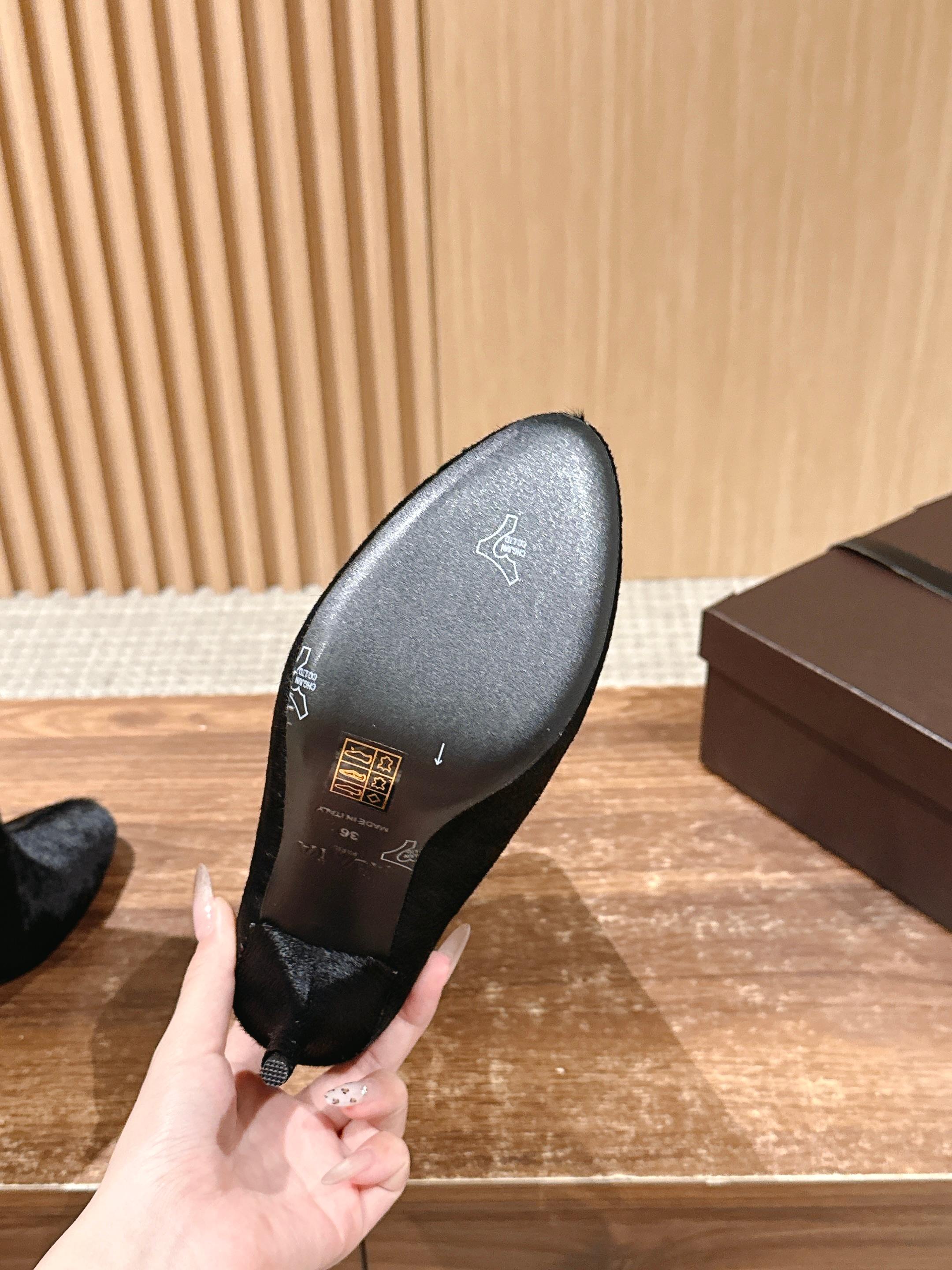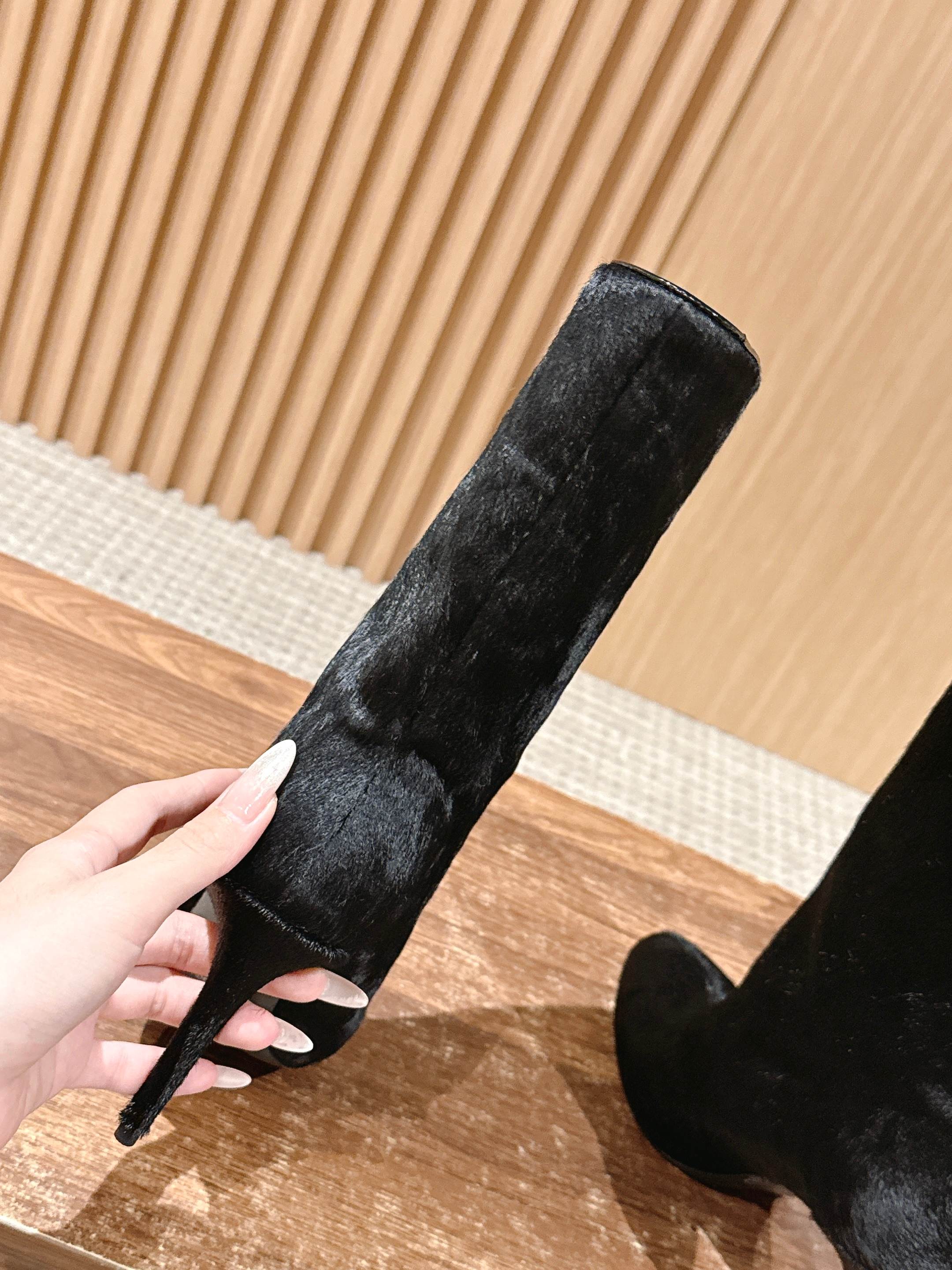 ALAIA high-heeled short boots black velvet 386015