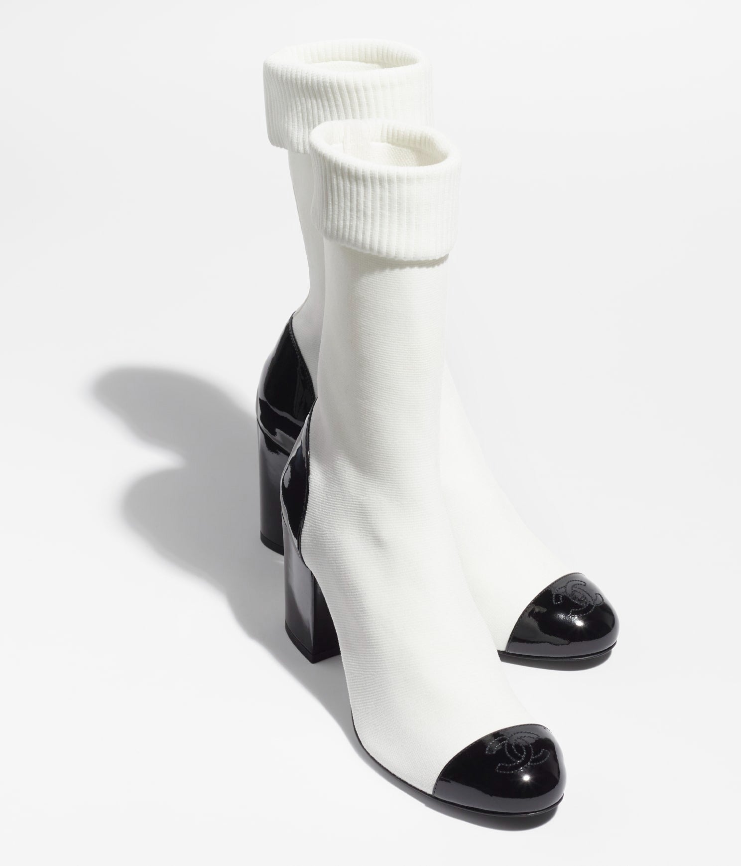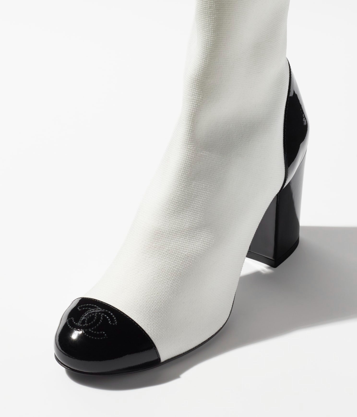 short boots white black stretch lambskin & patent calfskin