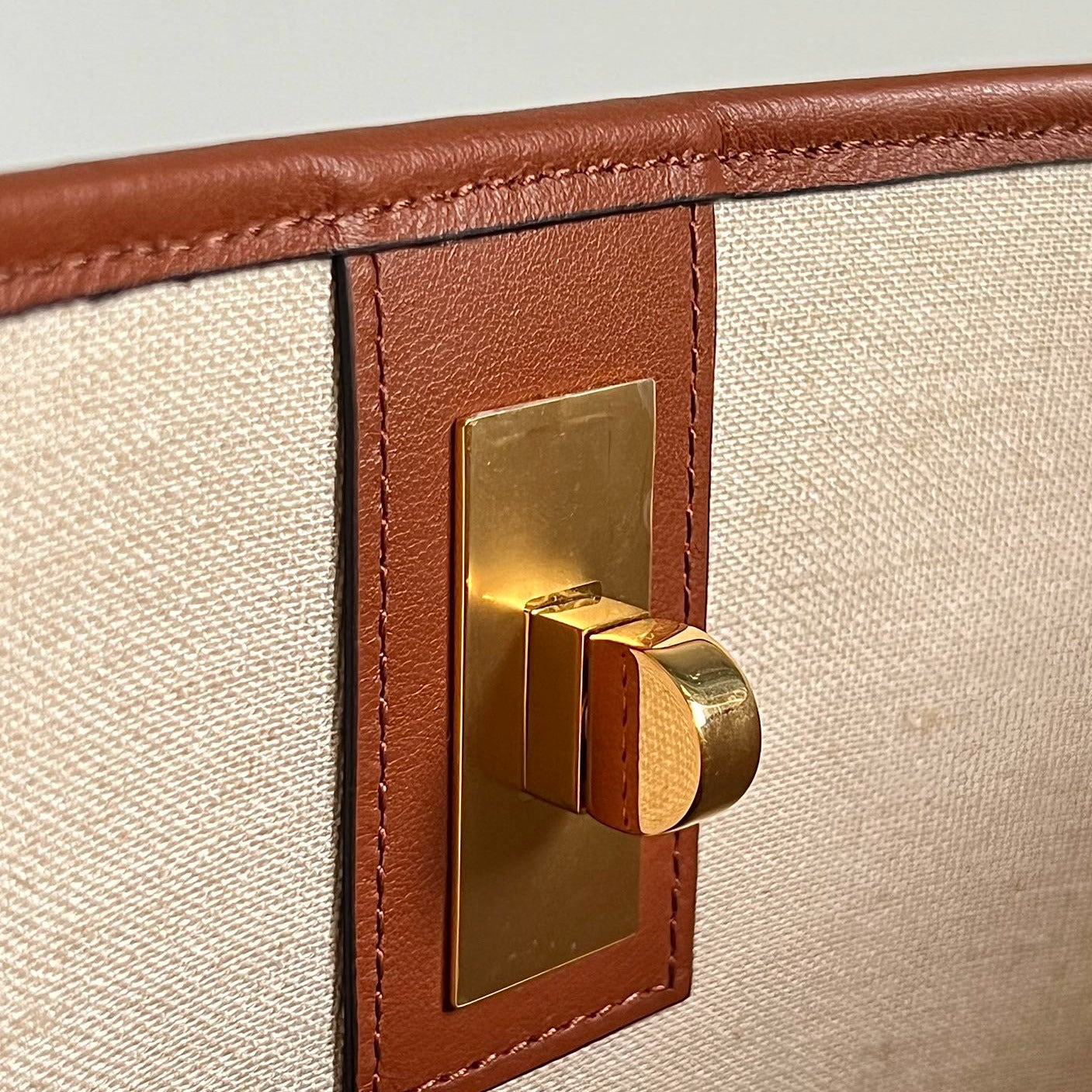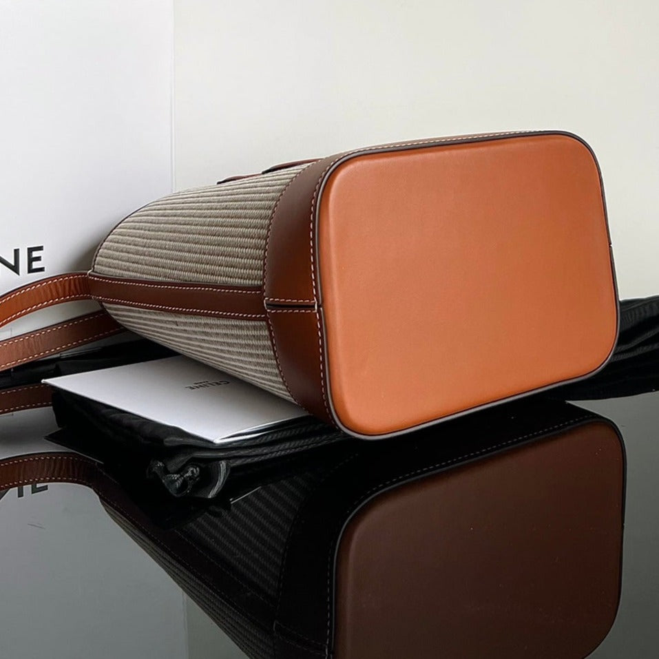 SMALL BUCKET CUIR TRIOMPHE 24CM IN STRIPED TEXTILE AND TAN CALFSKIN