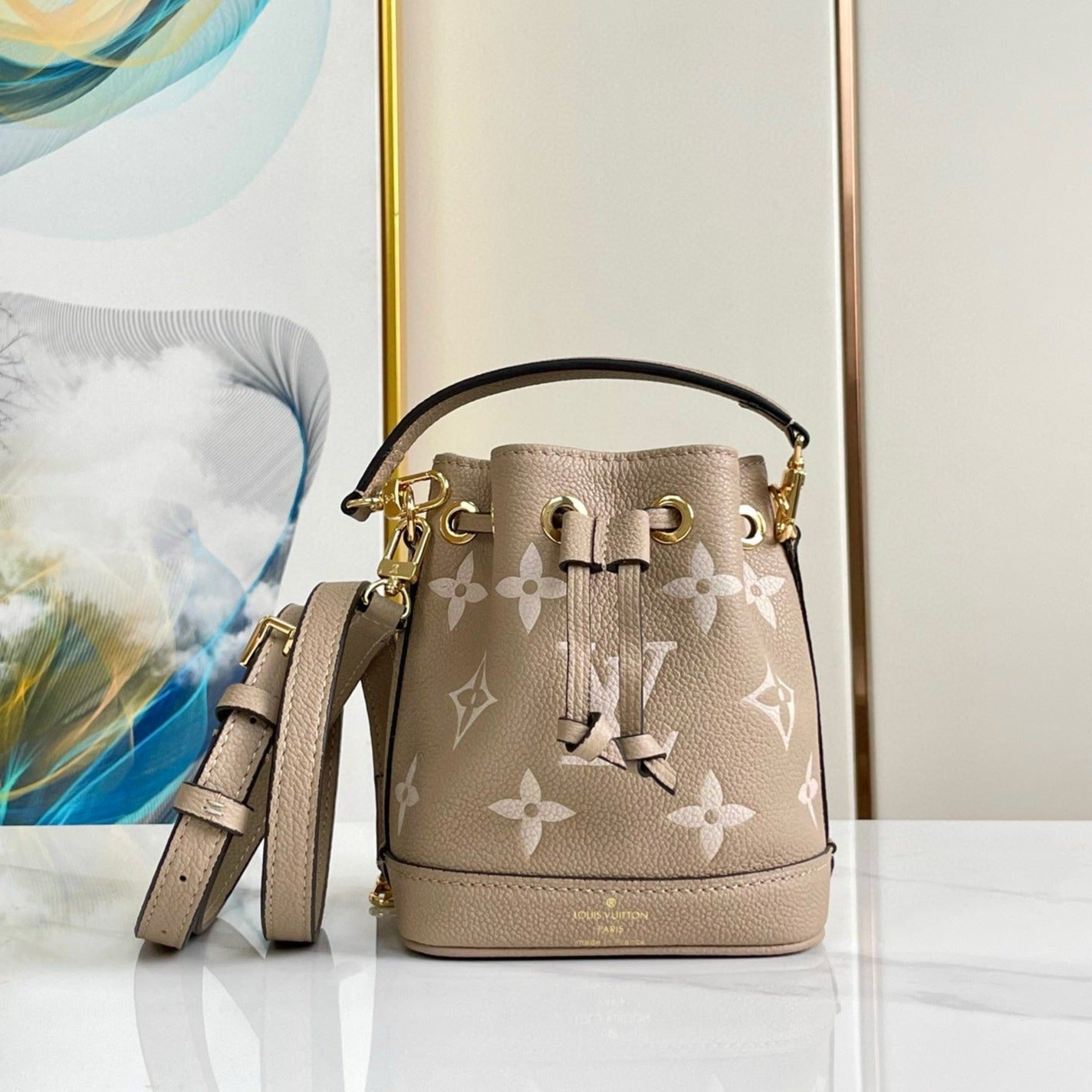 nano noe 13 brown monogram canvas beige calfskin gold hardware
