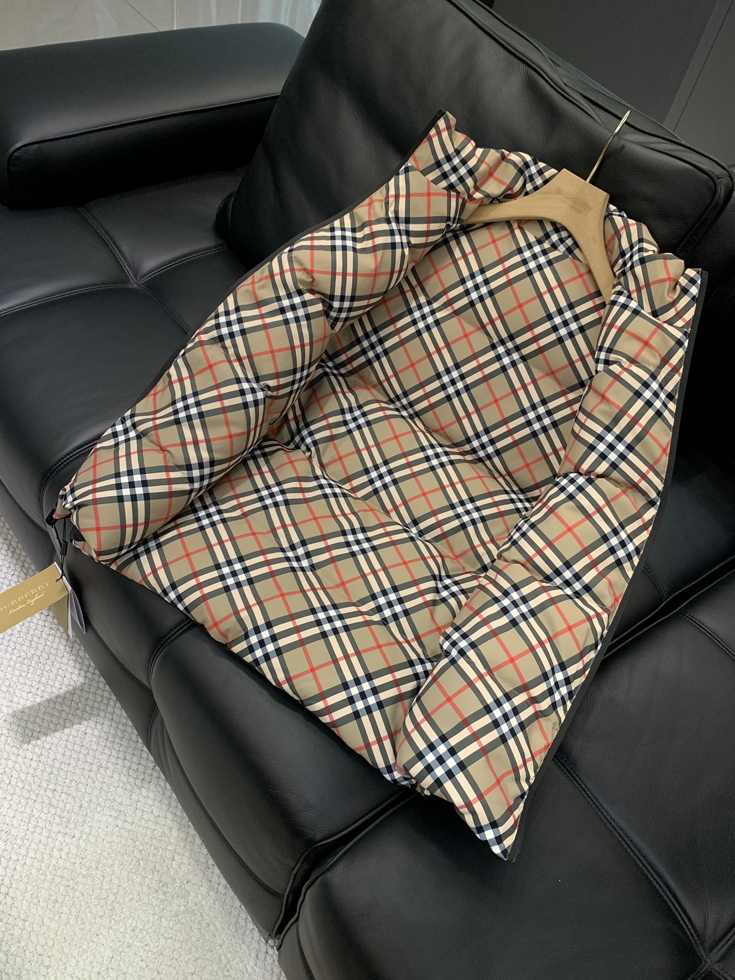Burberry 25 Fur Collar Plaid Slim-fit Black Jacket Polyester Down