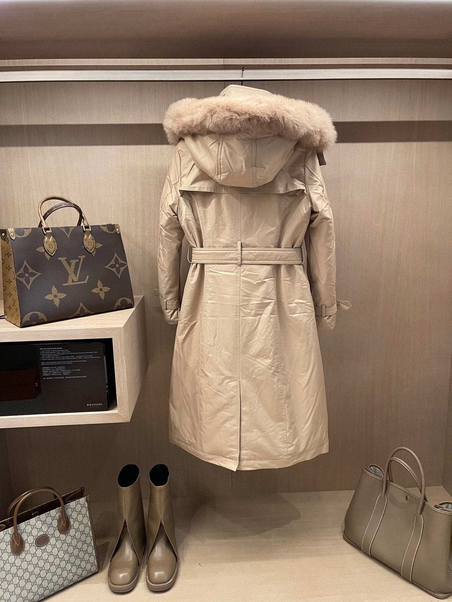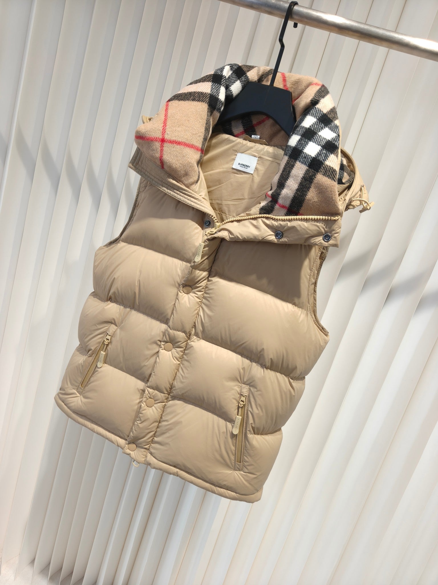 Burberry 25 Fur Collar Plaid Slim-fit Beige Jacket Polyester Down