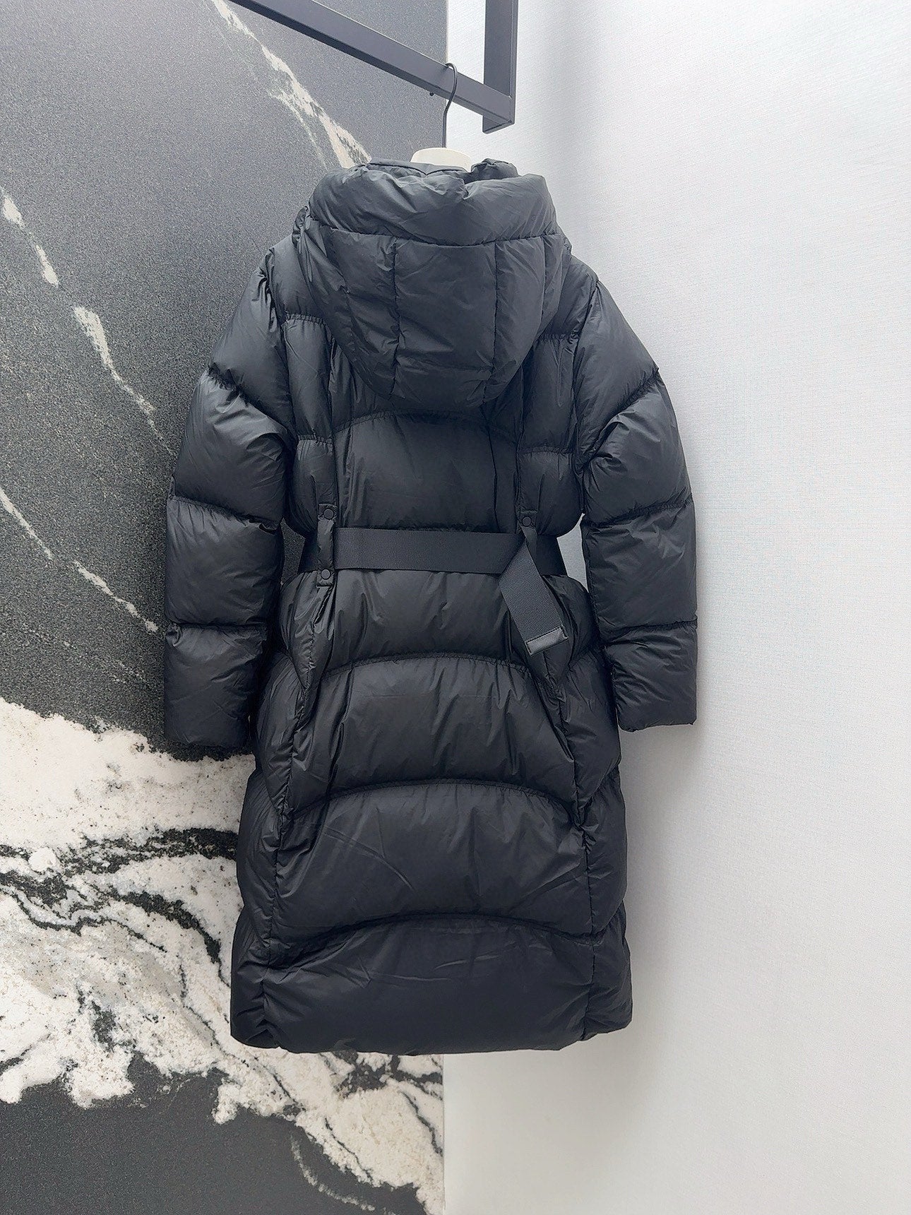 Burberry 25 Quilted Hooded Long Coat Black Polyester Cotton