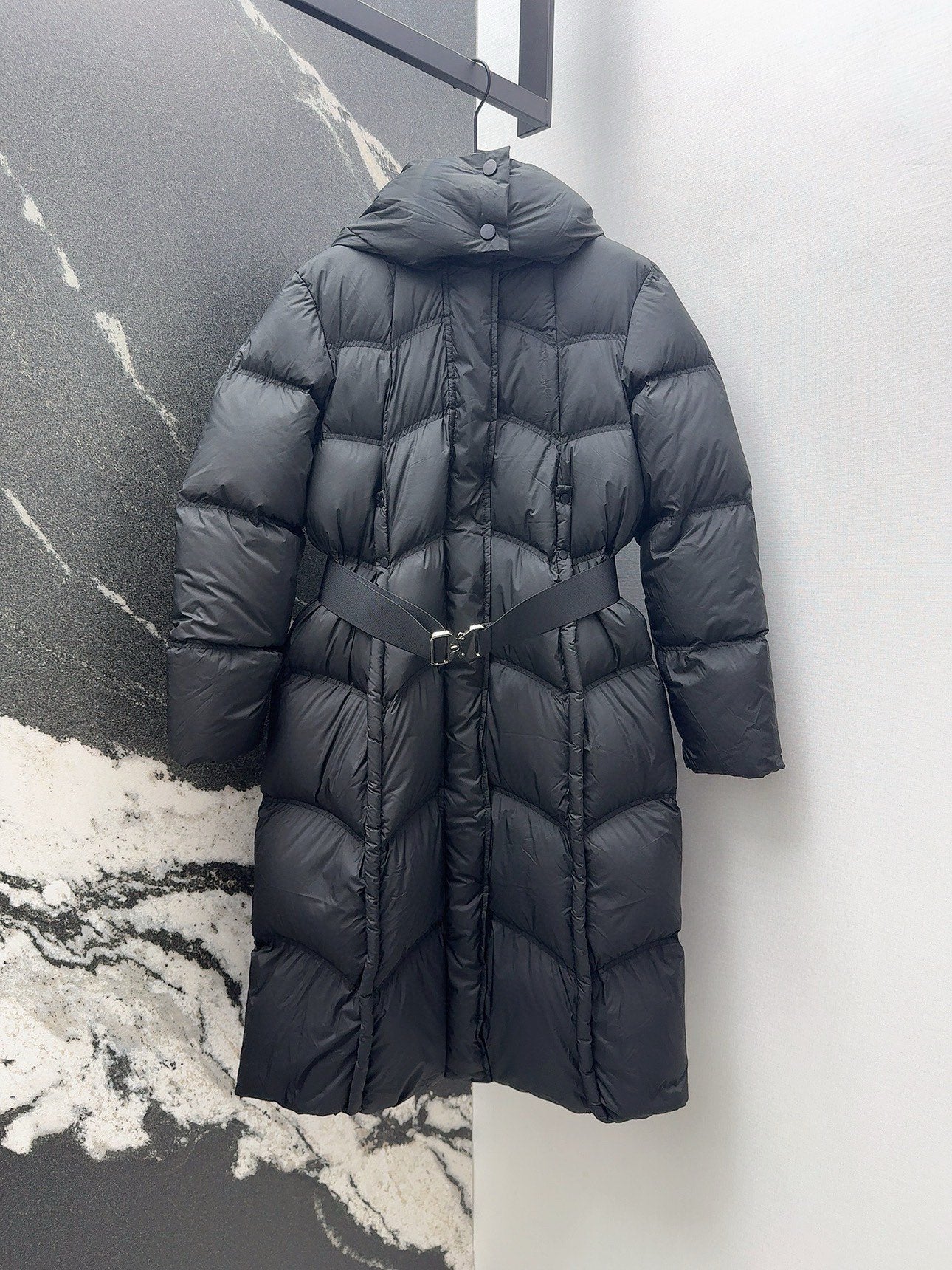 Burberry 25 Double-Breasted Slim Fit Long Down Jacket Black Polyester
