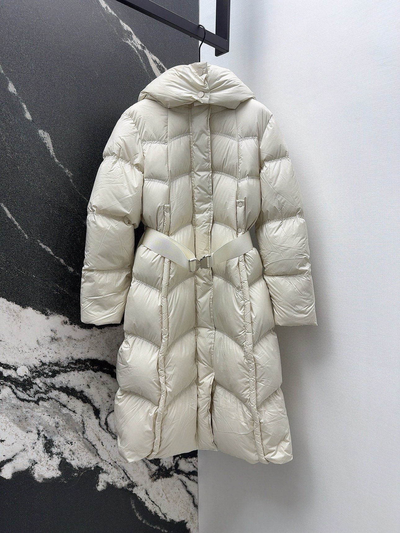 Burberry 25 Hooded Short Down Jacket with Adjustable Waist White Polyester