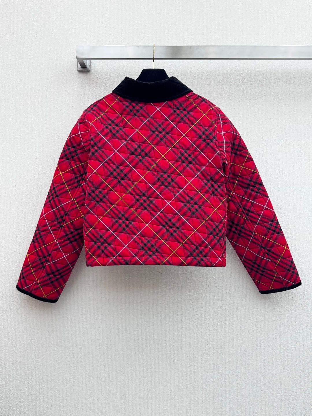 Burberry 25 Quilted Cropped Jacket Red Black Cotton