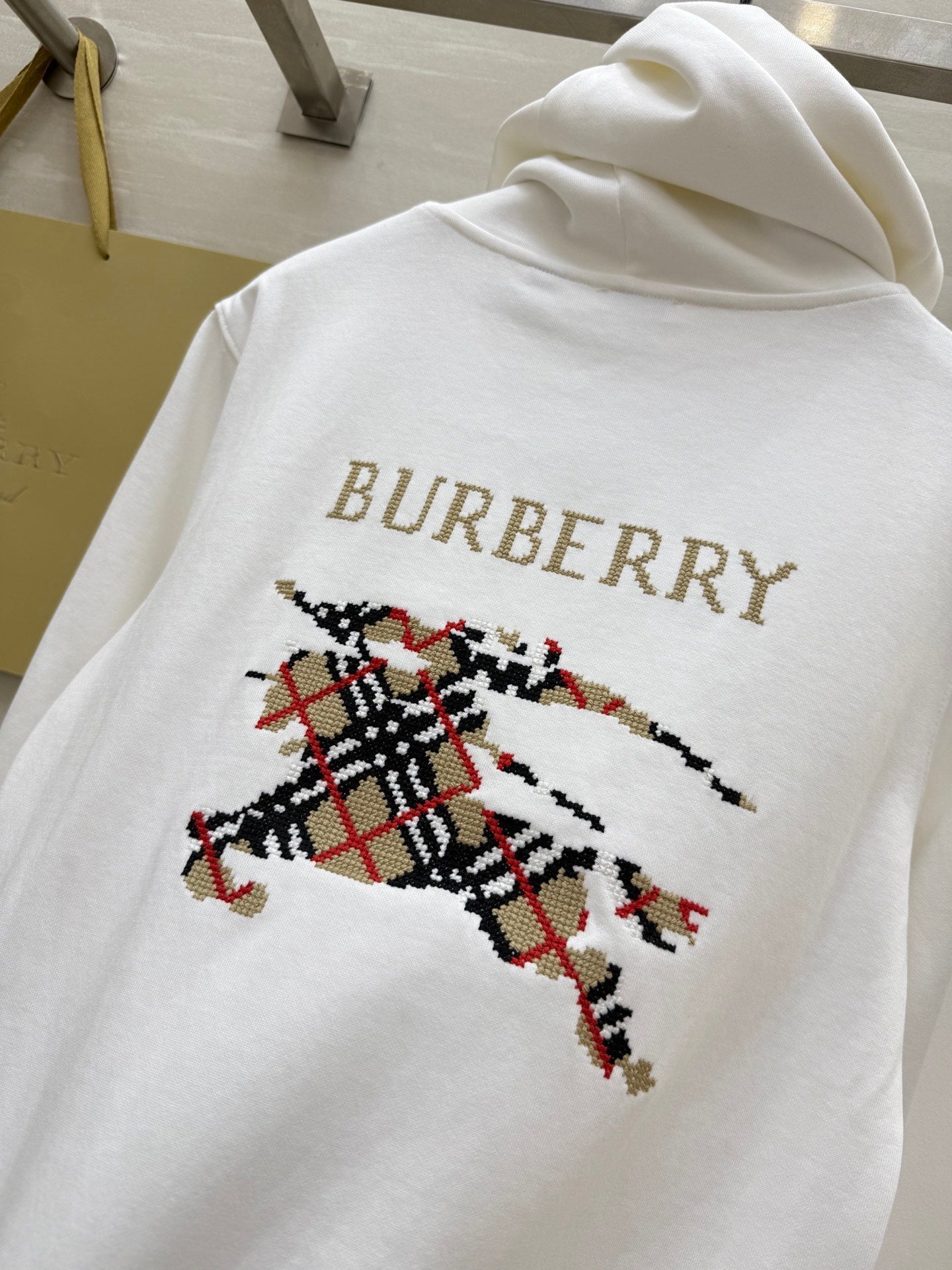 Burberry 25 Zipper-Up Hooded Knit Cardigan Beige Wool Cashmere