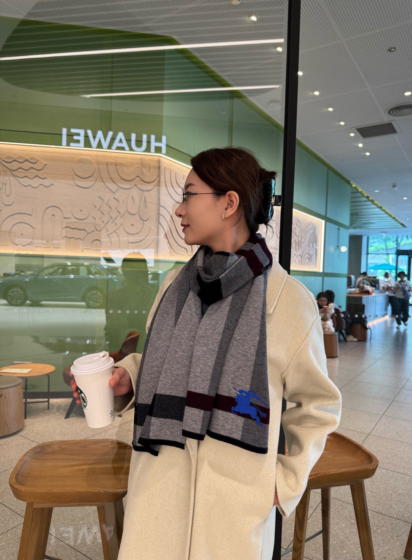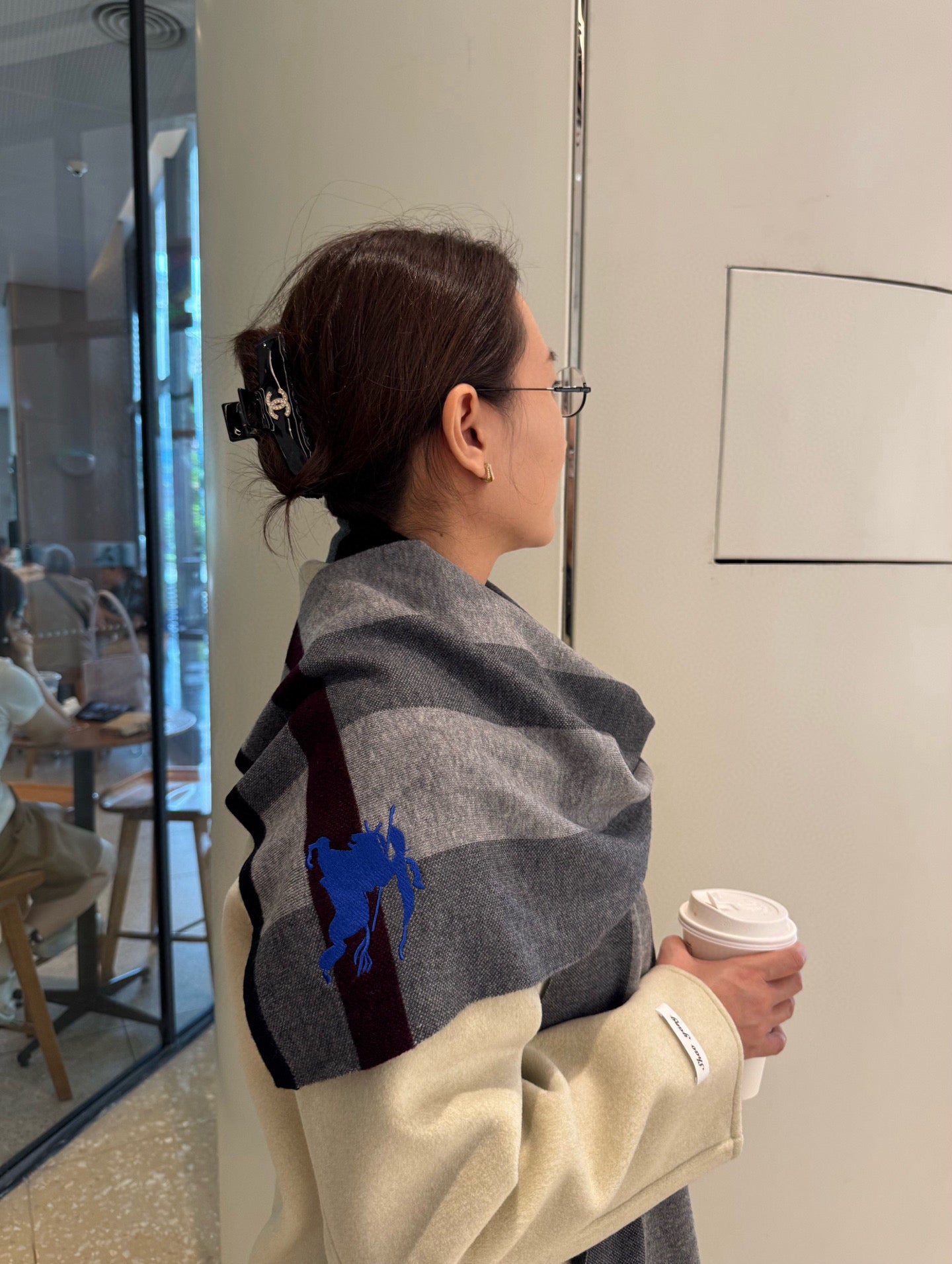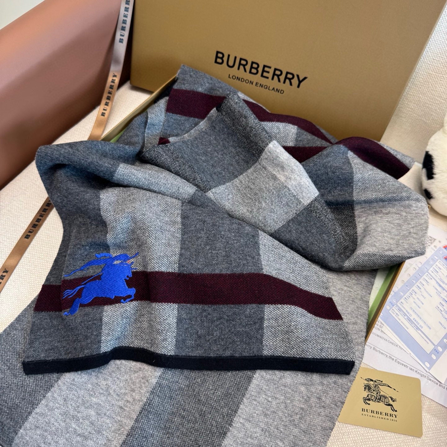 BBR Classic Embroidered Scarf 185CM Gray Black Cashmere 292807