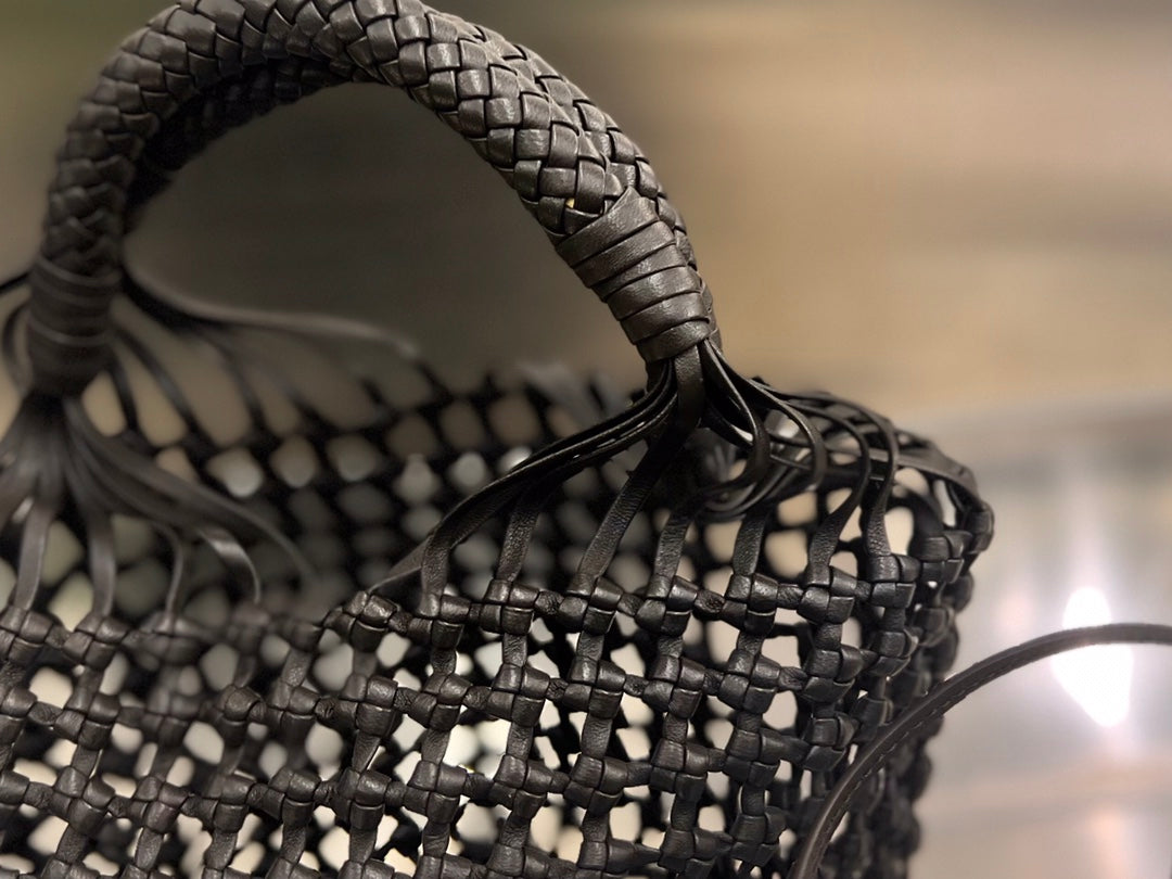 BV SMALL ANDIAMO 25CM BLACK LAMBSKIN