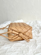 • Mini intrecciato leather crossbody bag with knotted metallic embellishment