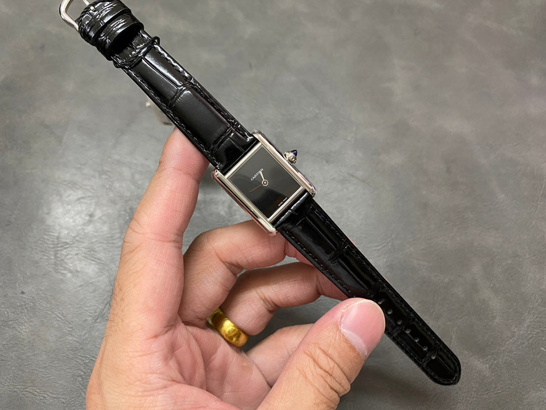 TANK SOLO SILVER CASE BLACK CALFSKIN LEATHER