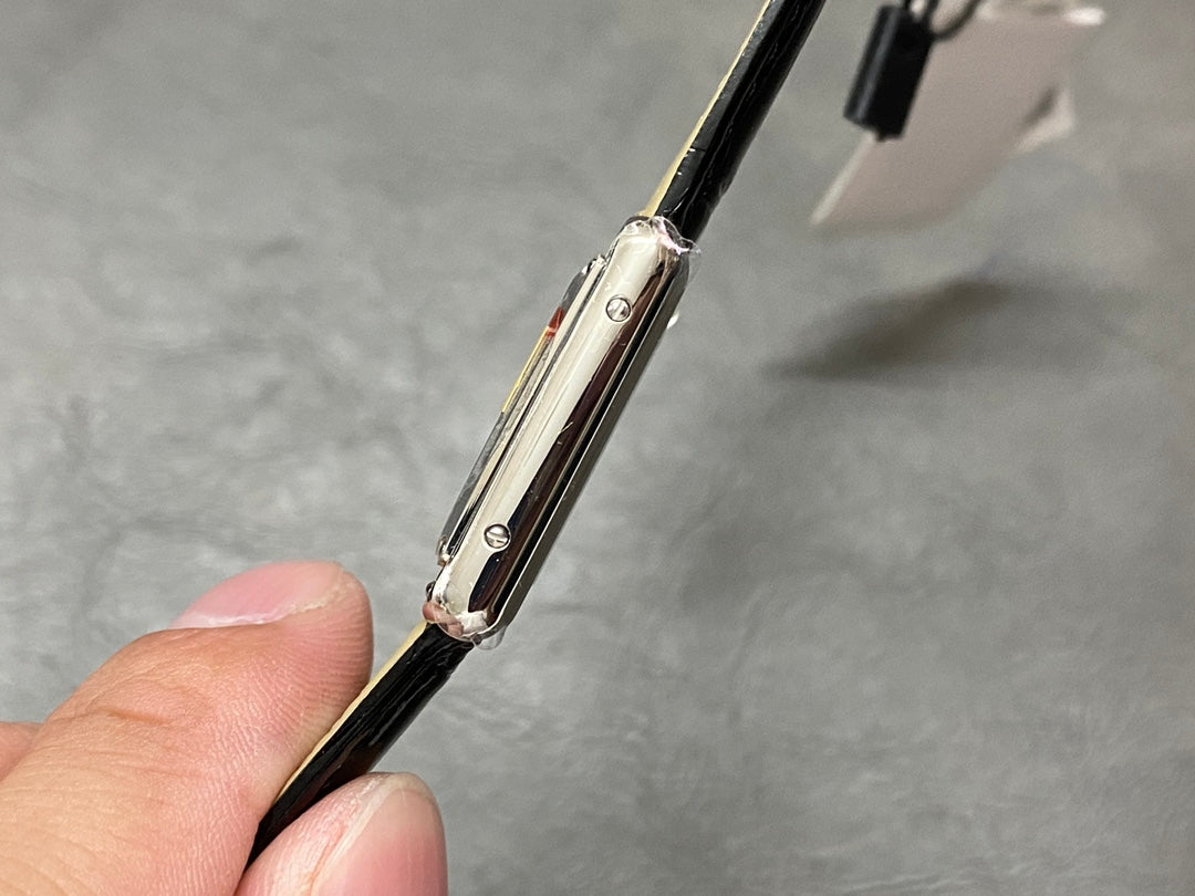 SANTOS DE CARTIE LARGE STEEL CASE BLACK BEZEL WHITE DIAL
