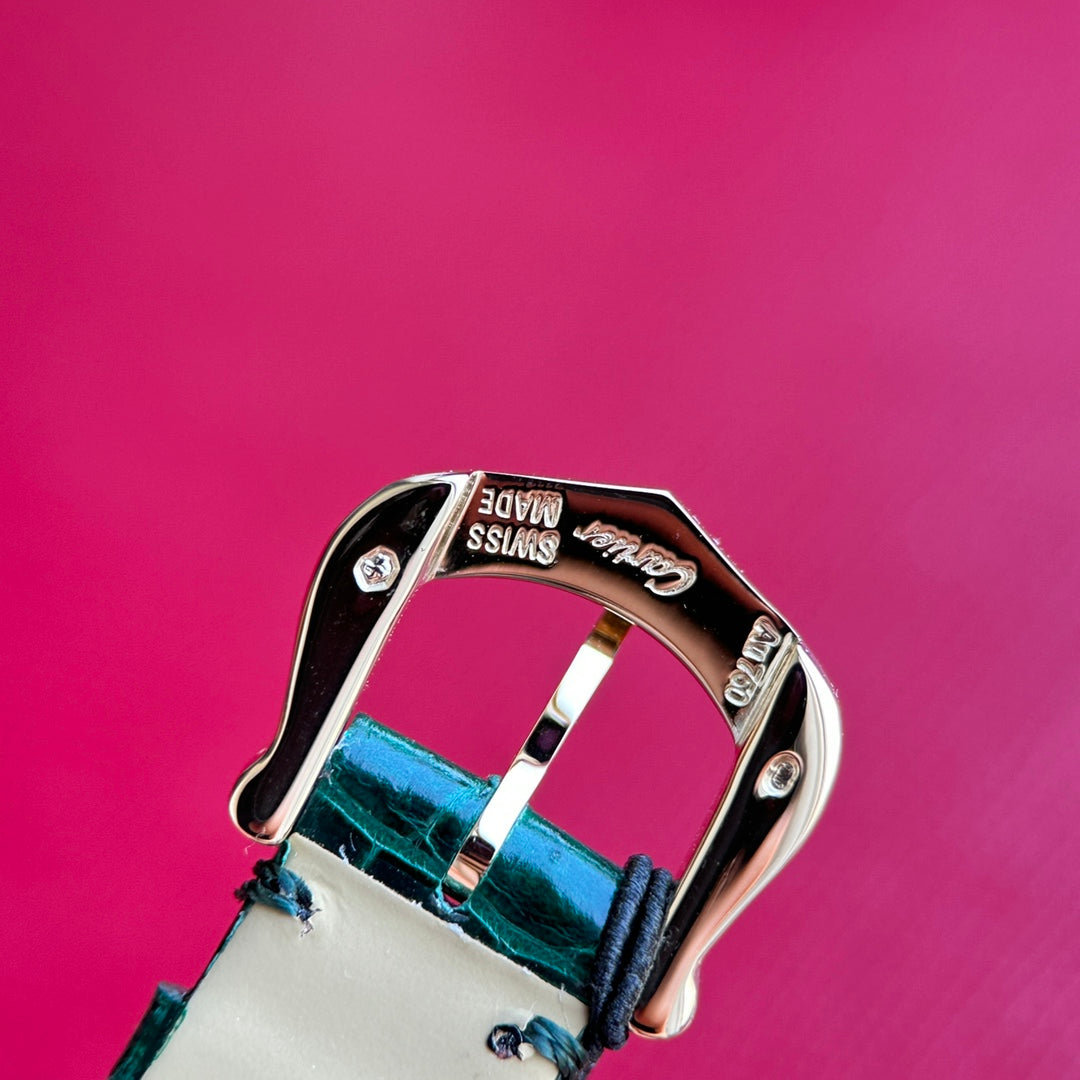 Baignoire 23mm Pink Gold Case Diamond Bezel Dark Green Leather Strap