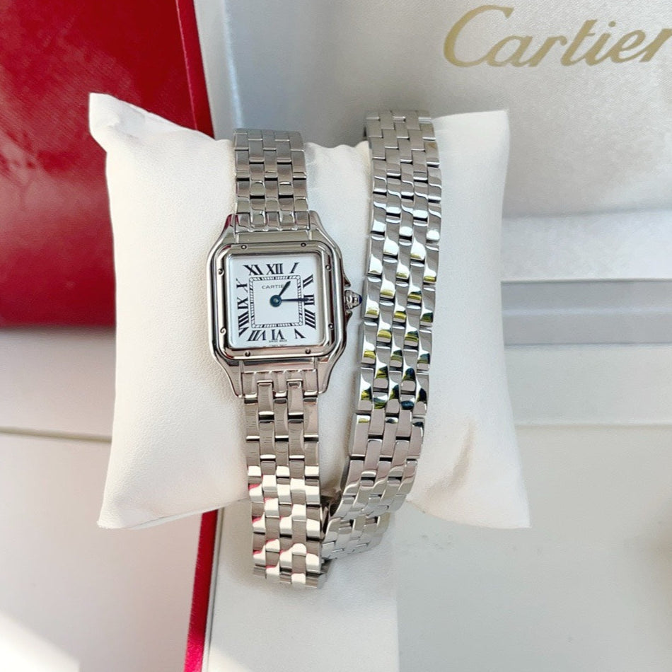 Panthere 22mm Silver Diamond Bezel Double Chain 44cm