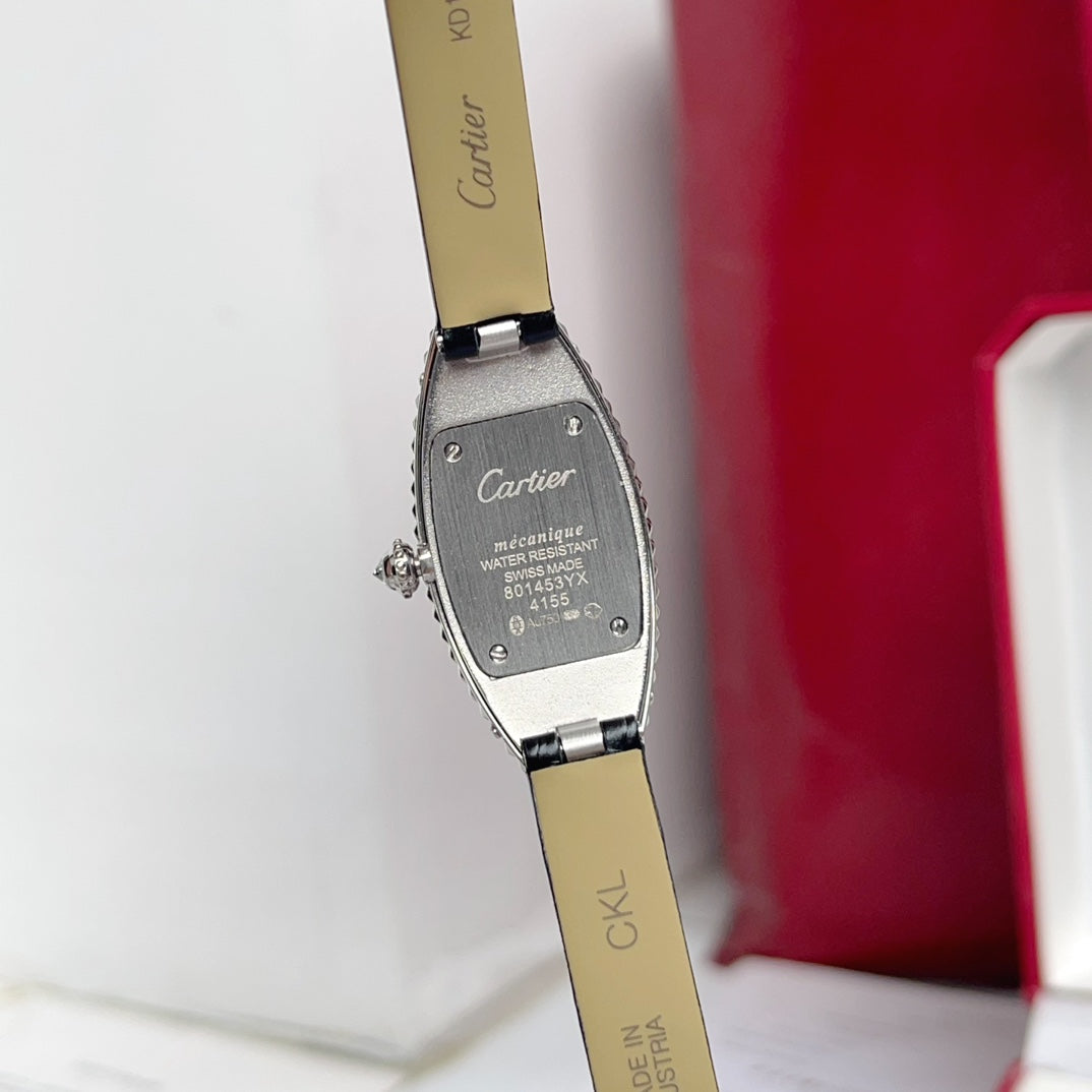 Baignoire 23mm Silver Case Diamond Bezel Black Leather Strap