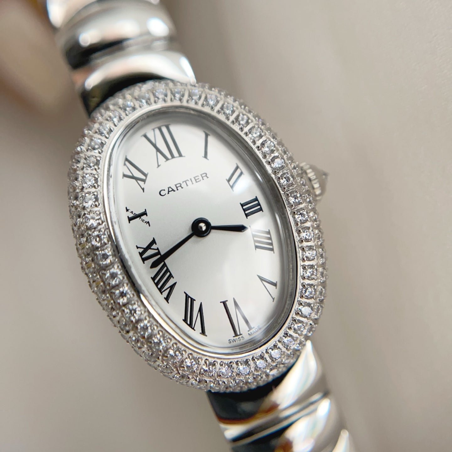 Baignoire 2024 24.6mm Silver Diamond Bezel White Dial