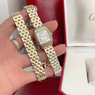 Panthere 22mm Gold Silver Diamond Bezel Double Chain 44cm