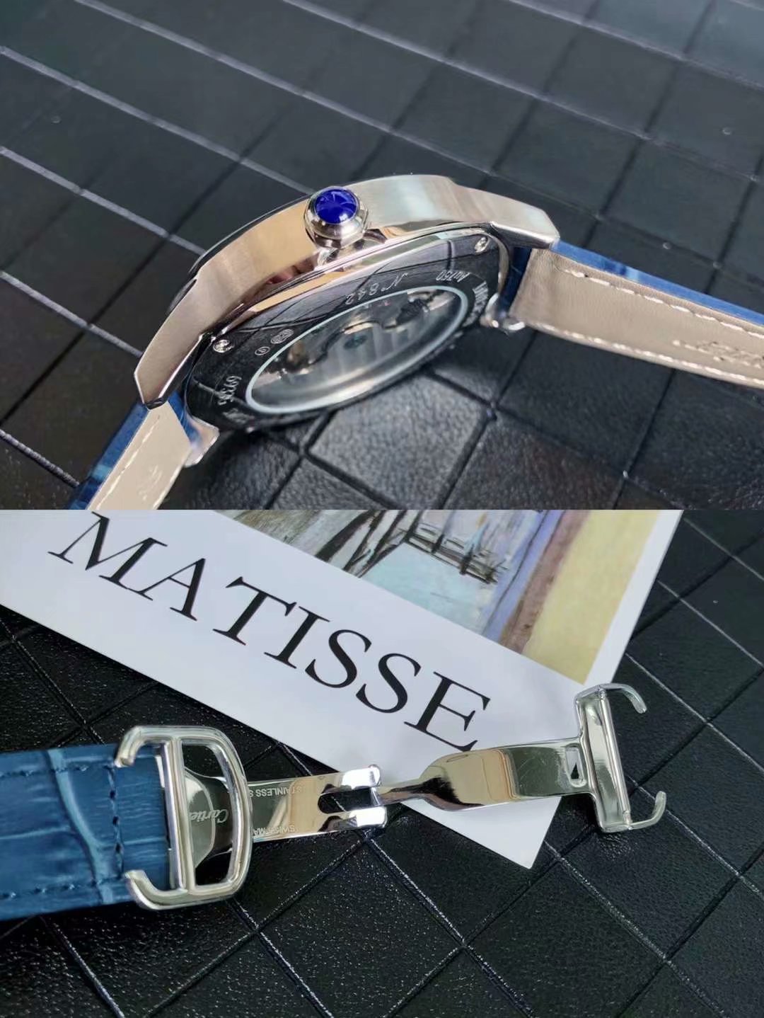 BALLON BLANC DE CATIER QUARTZ STEEL CASE GREY LEATHER