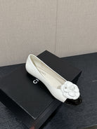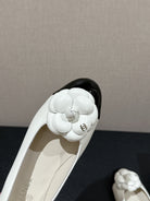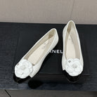 ballet flat flower white calfskin black patent calfskin