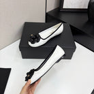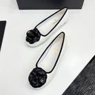CC 25 Ballet Flat Flower White Quilted Calfskin