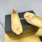 CC 25P Ballet Flat Flower Beige Calfskin Black Patent Calfskin