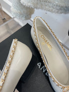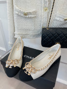 CC Ballet Flats 25mm White Bow Tie Chain Lambskin