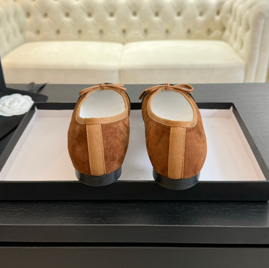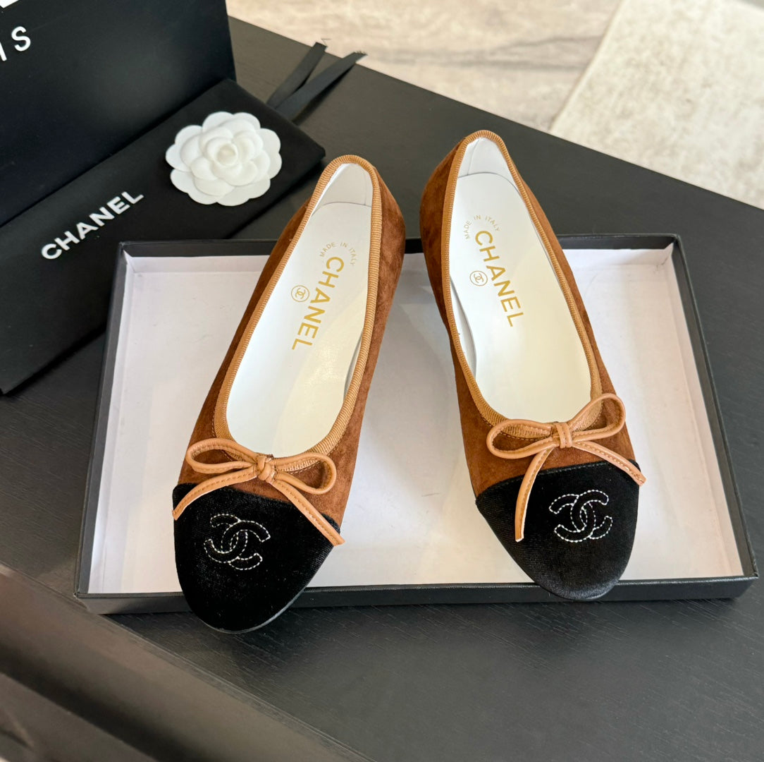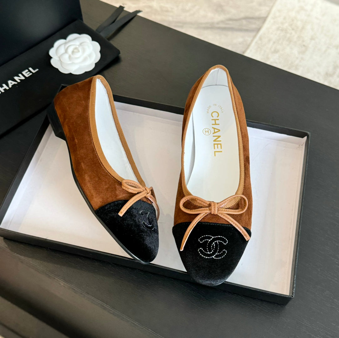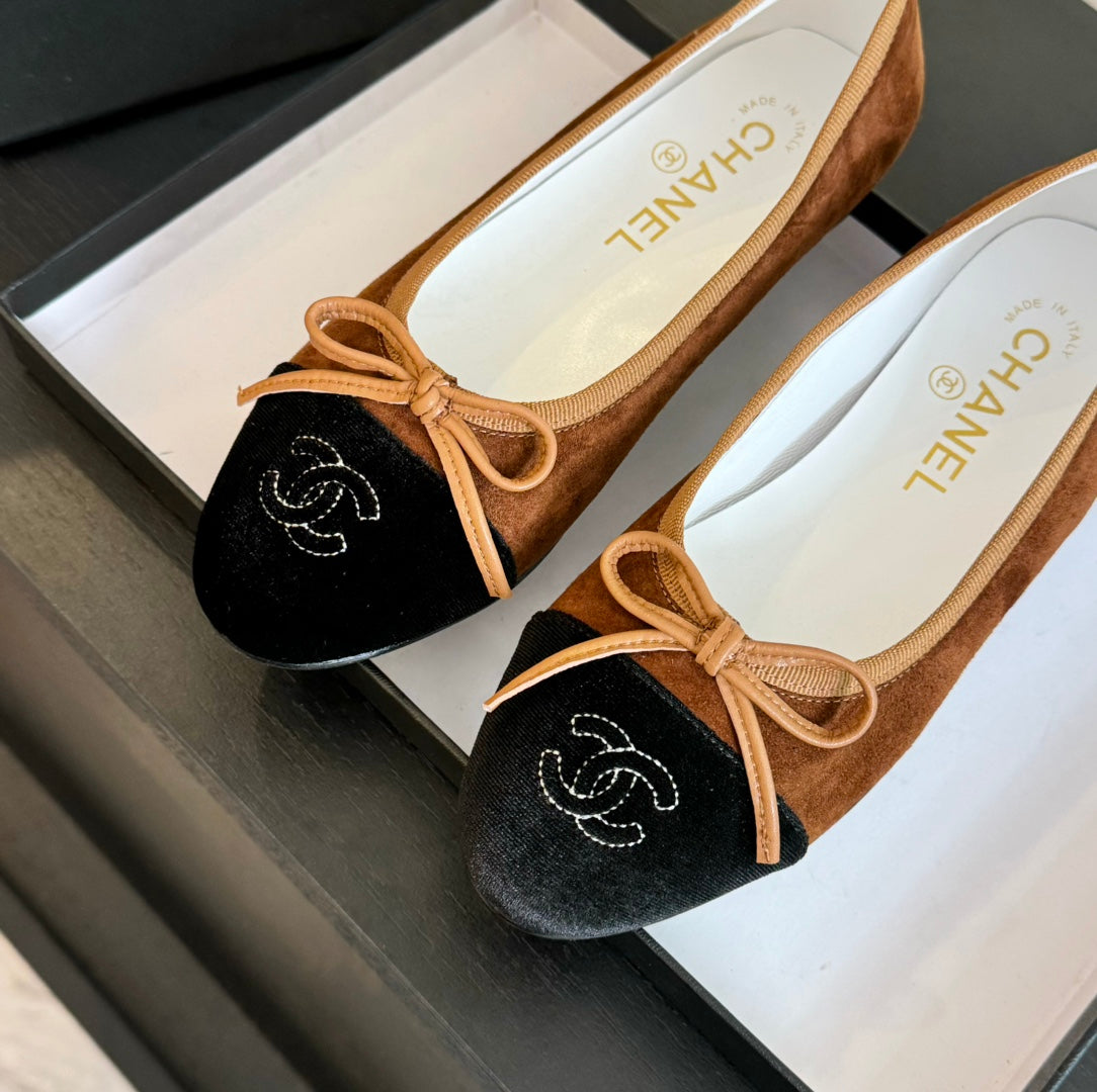 ballet flat chocolate suede and black canvas