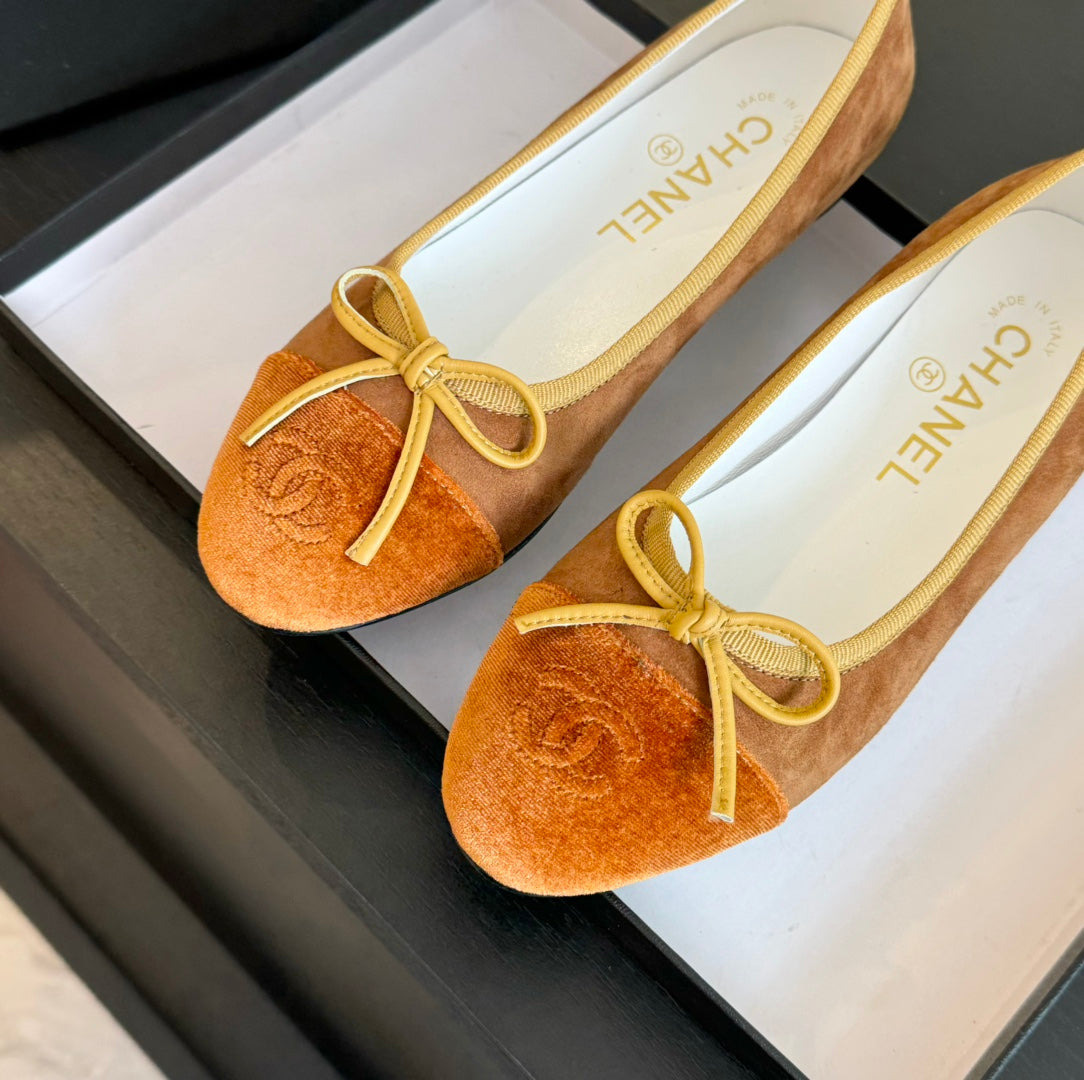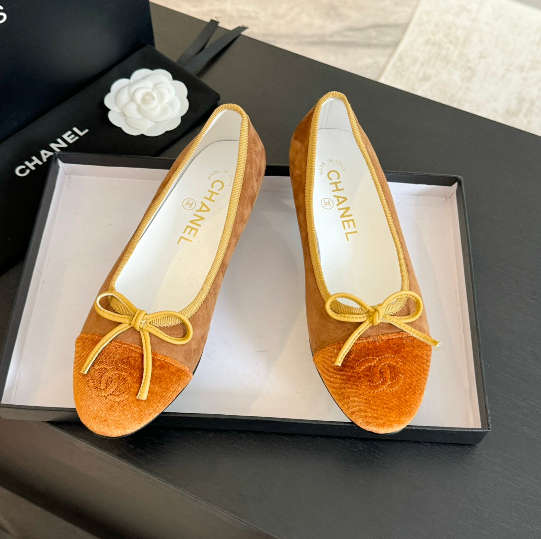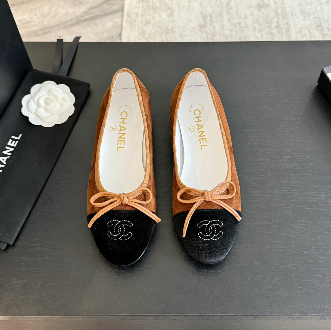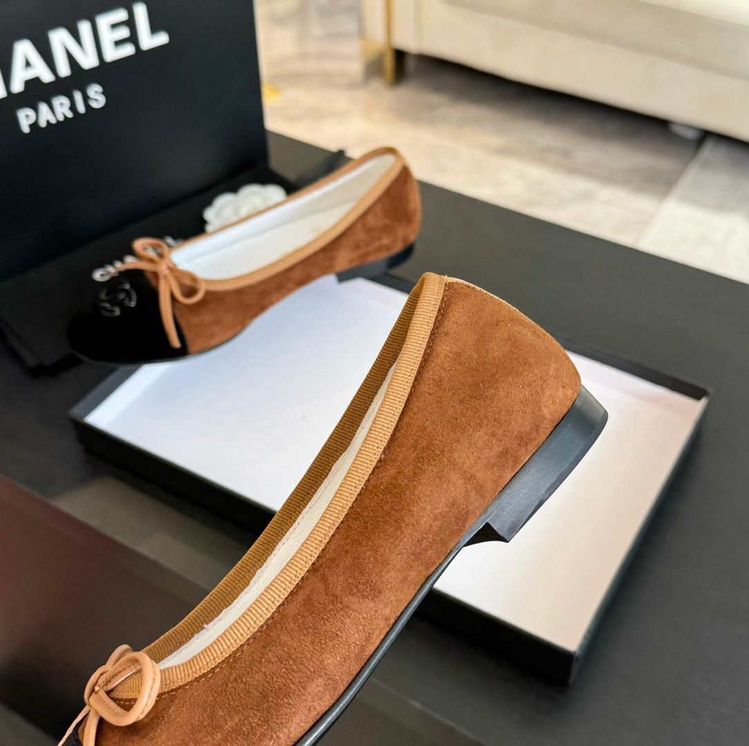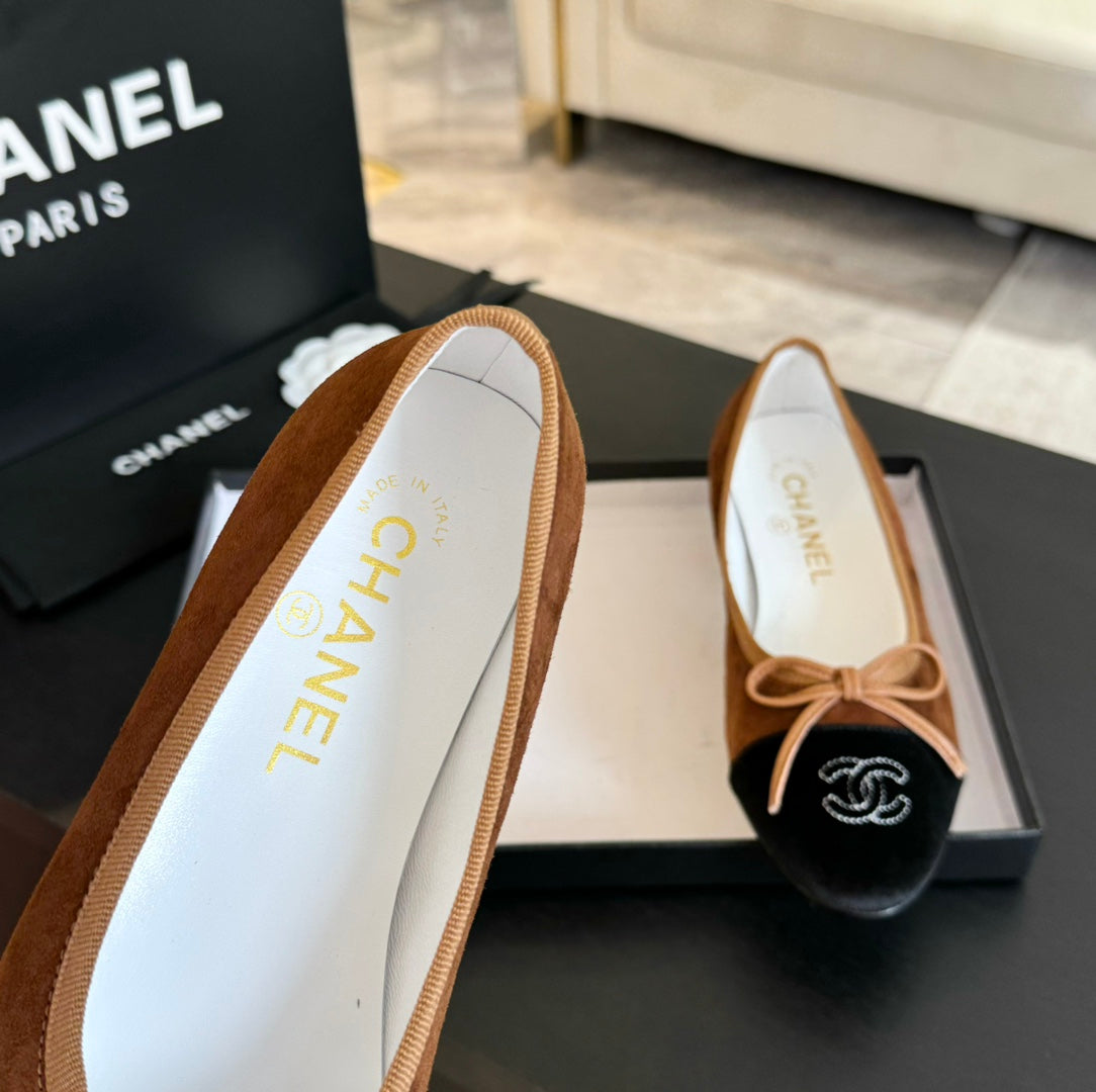 ballet flat chocolate suede and black canvas