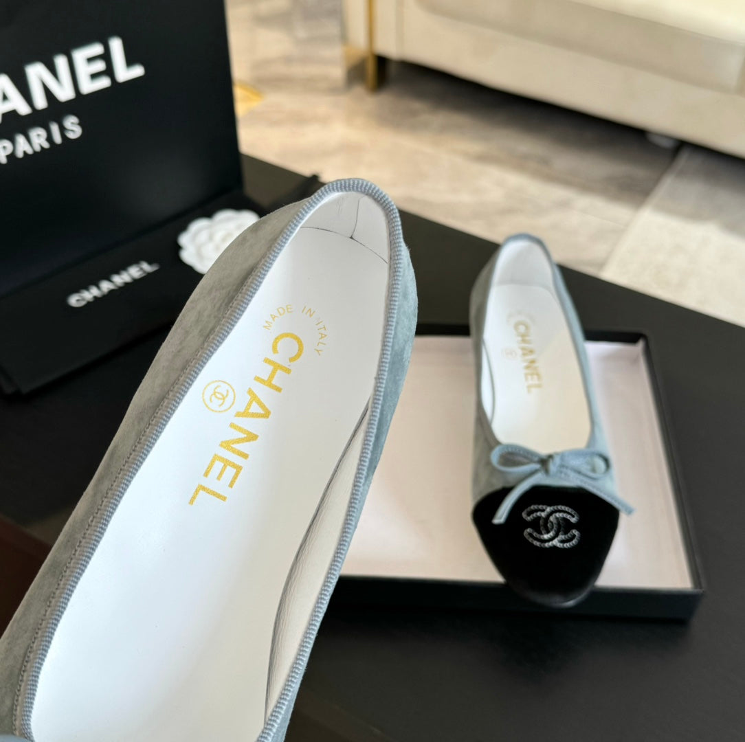 Chanel 25 Ballet Flat Grey-taupe Suede 469253