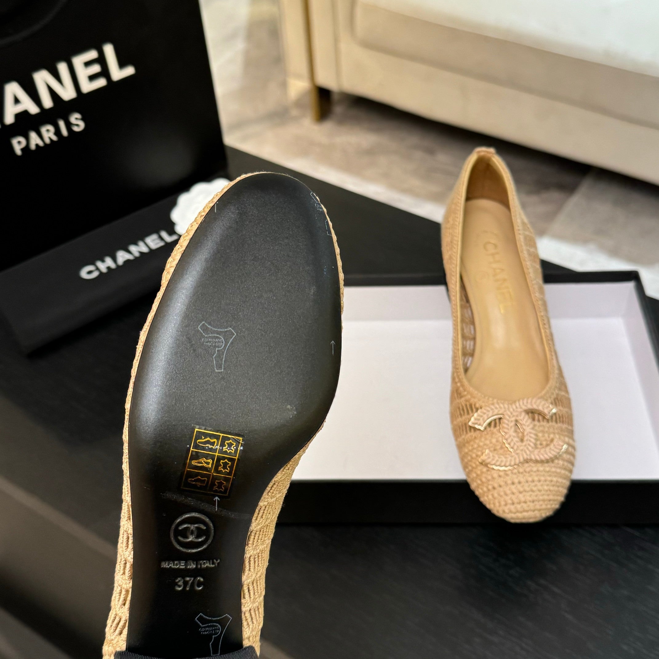 CC 25P Ballet Flat Beige Raffia Large Logo