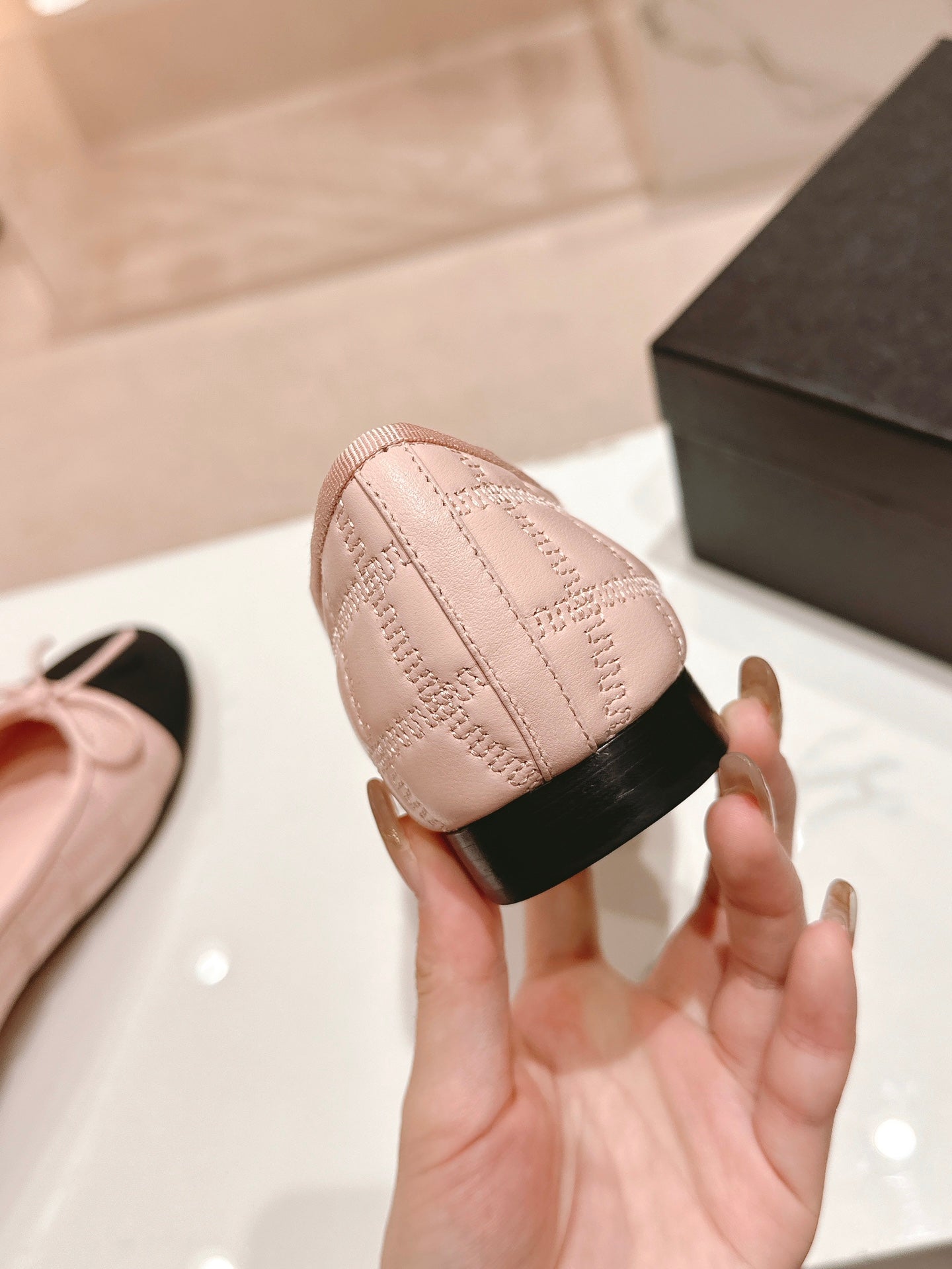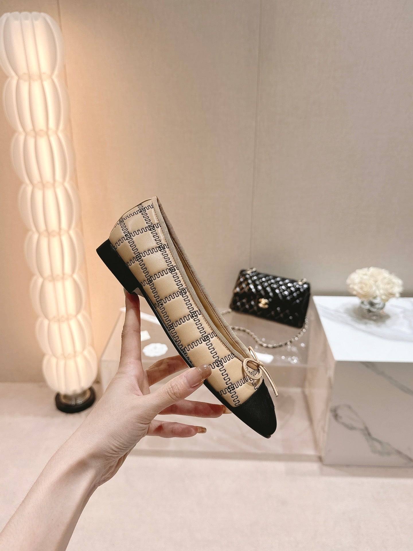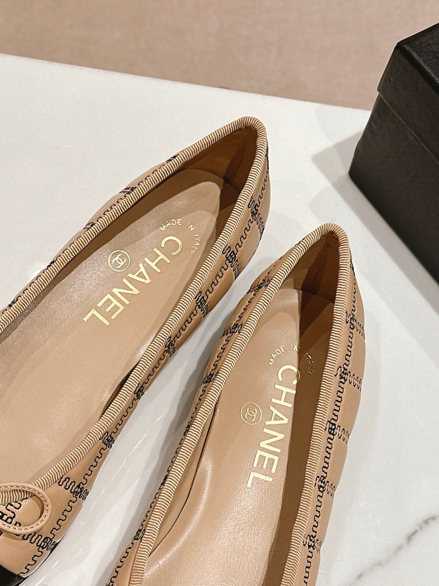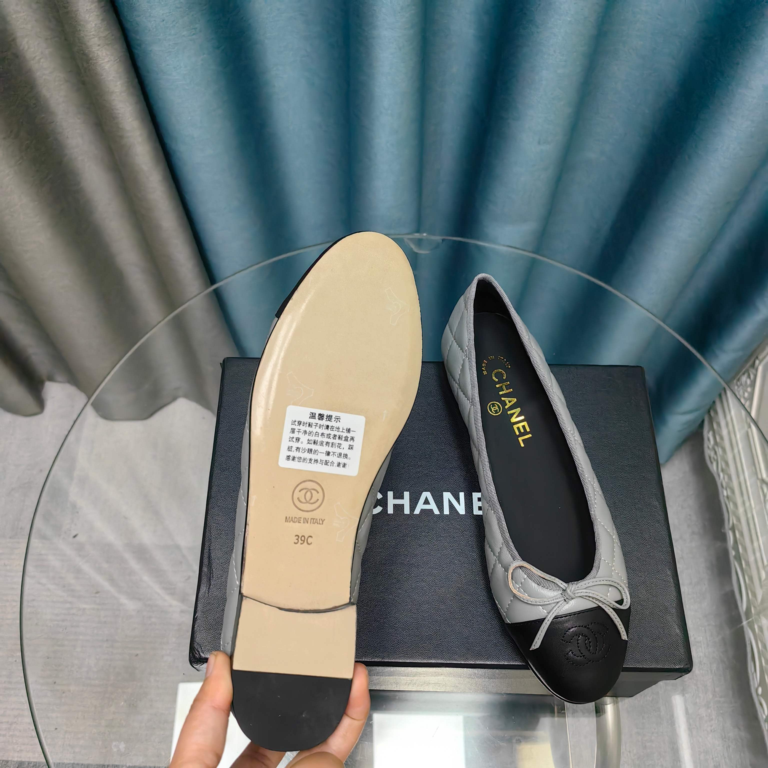 CC 25 Cambon Ballet Flat Beige Black Quilted Calfskin