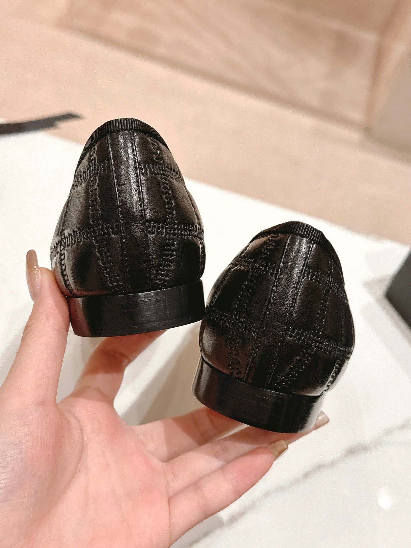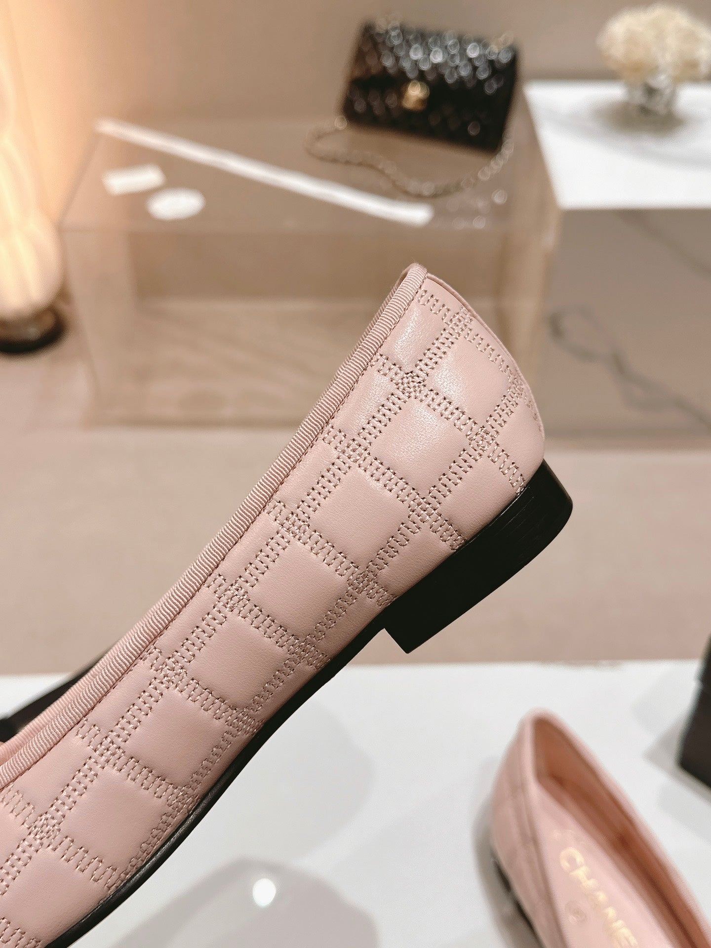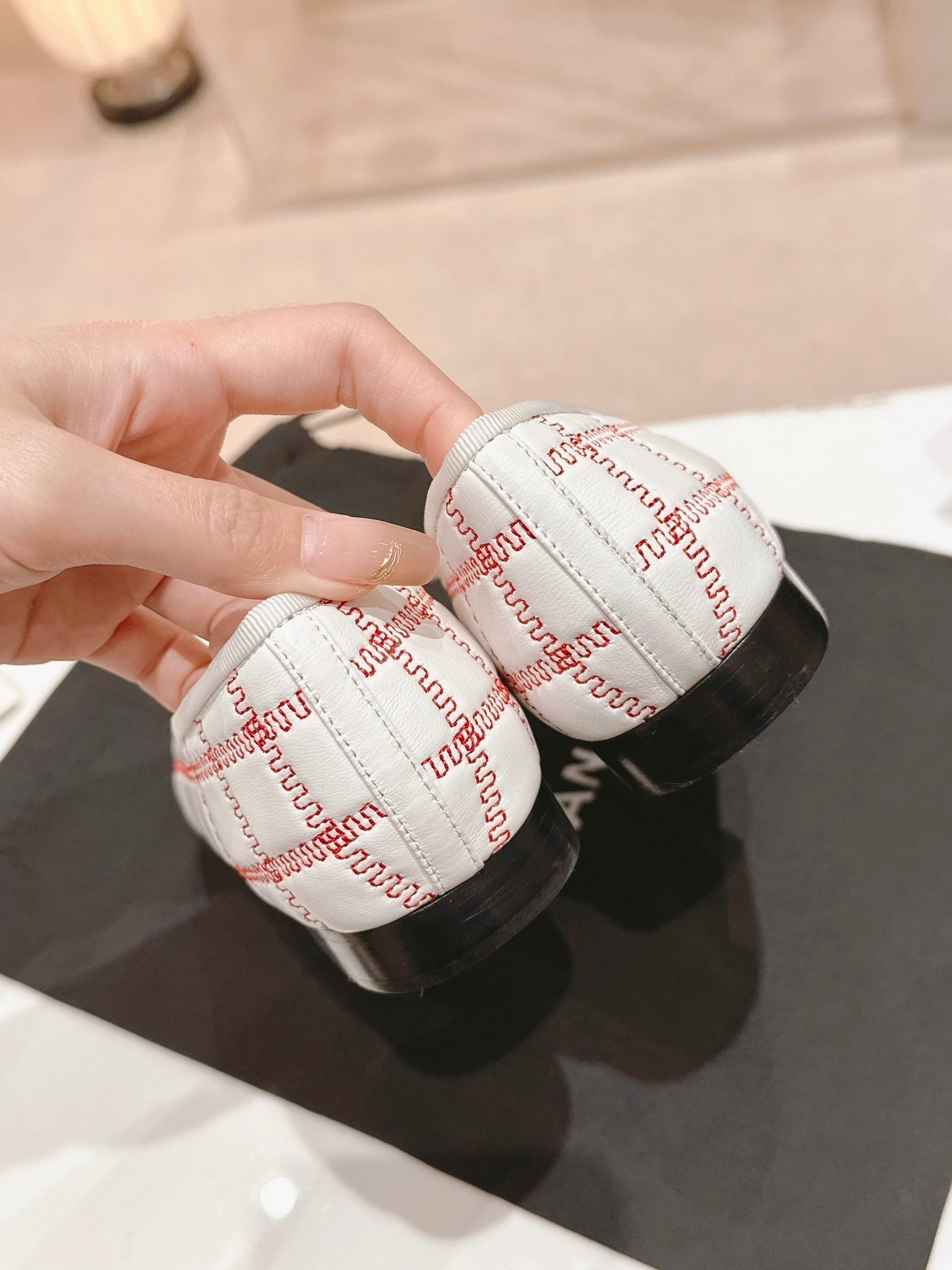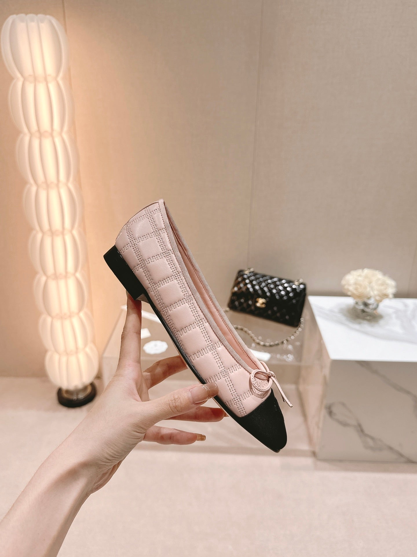 CC 25 Cambon Ballet Flat Beige Black Quilted Calfskin