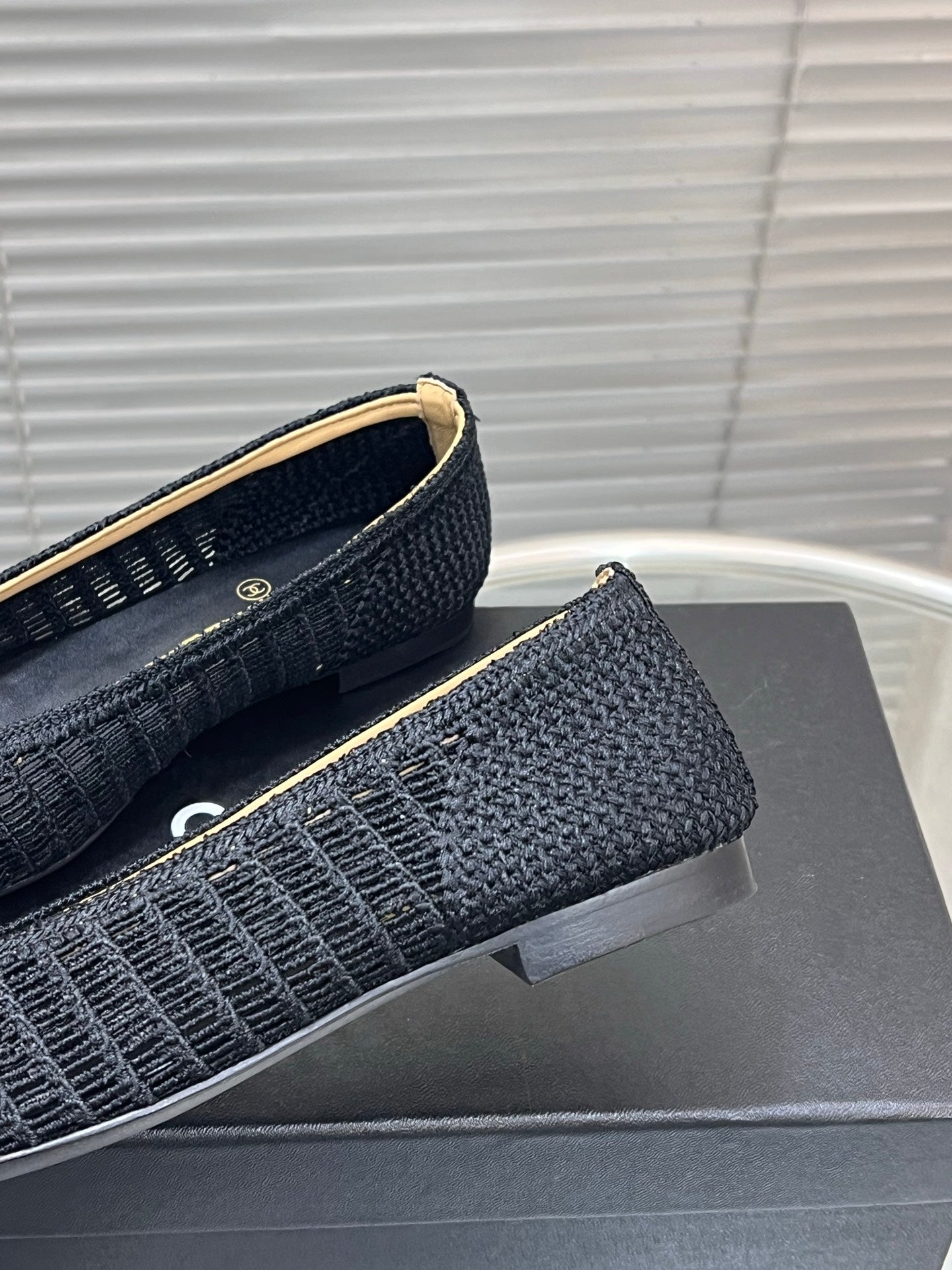 Chanel 25 Ballet Flat 50mm Black Woven Lambskin 473051