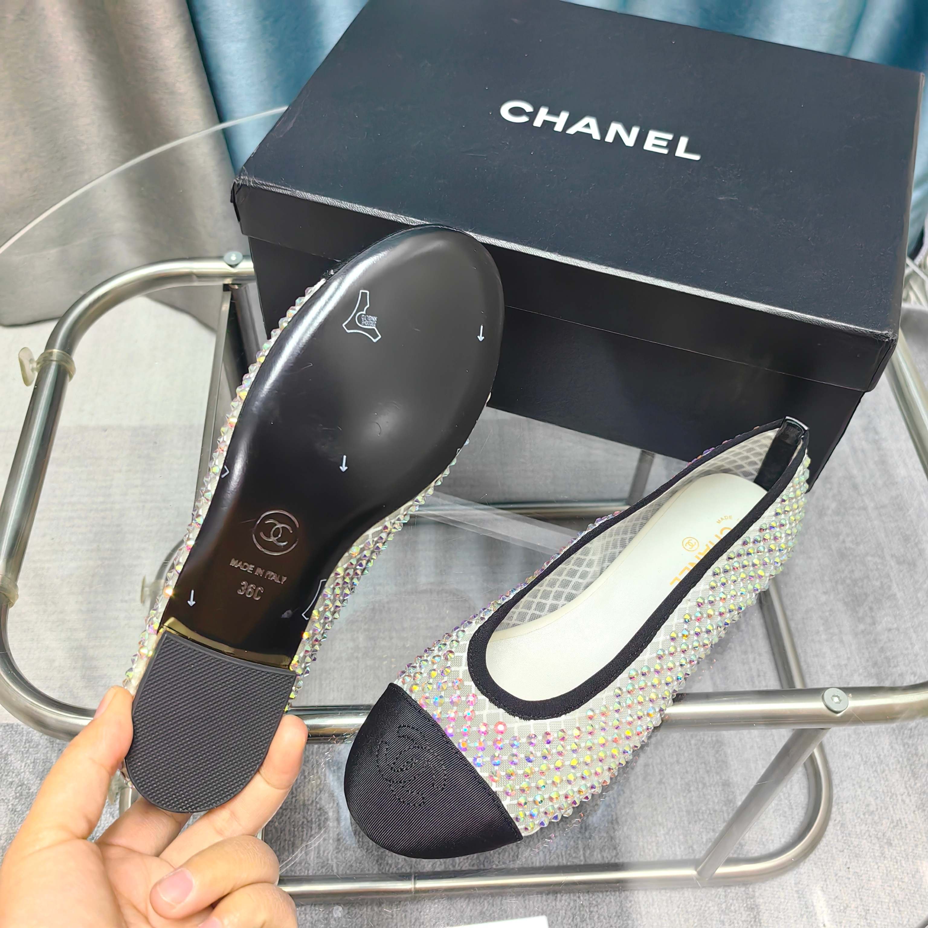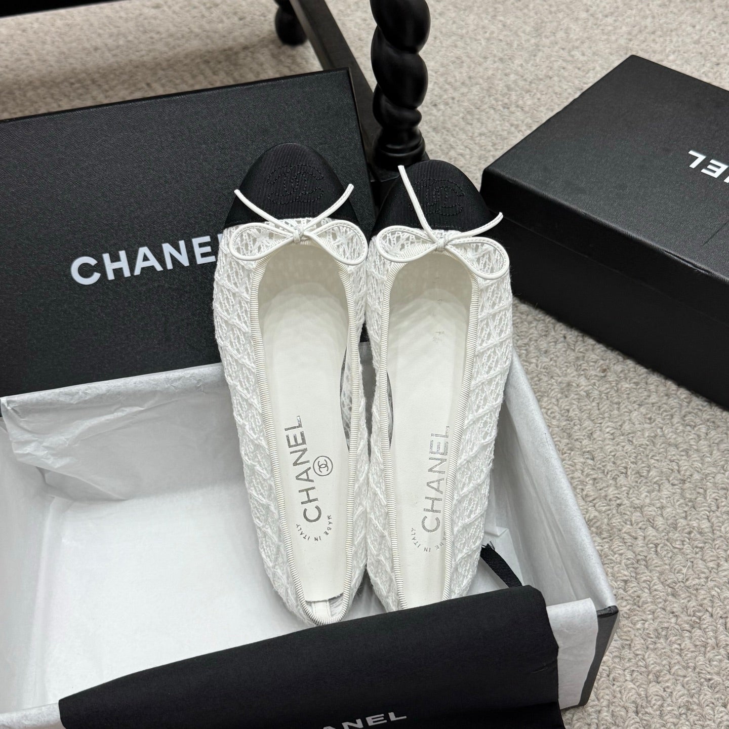 CC 25 Cambon Ballet Flat Black White Quilted Calfskin